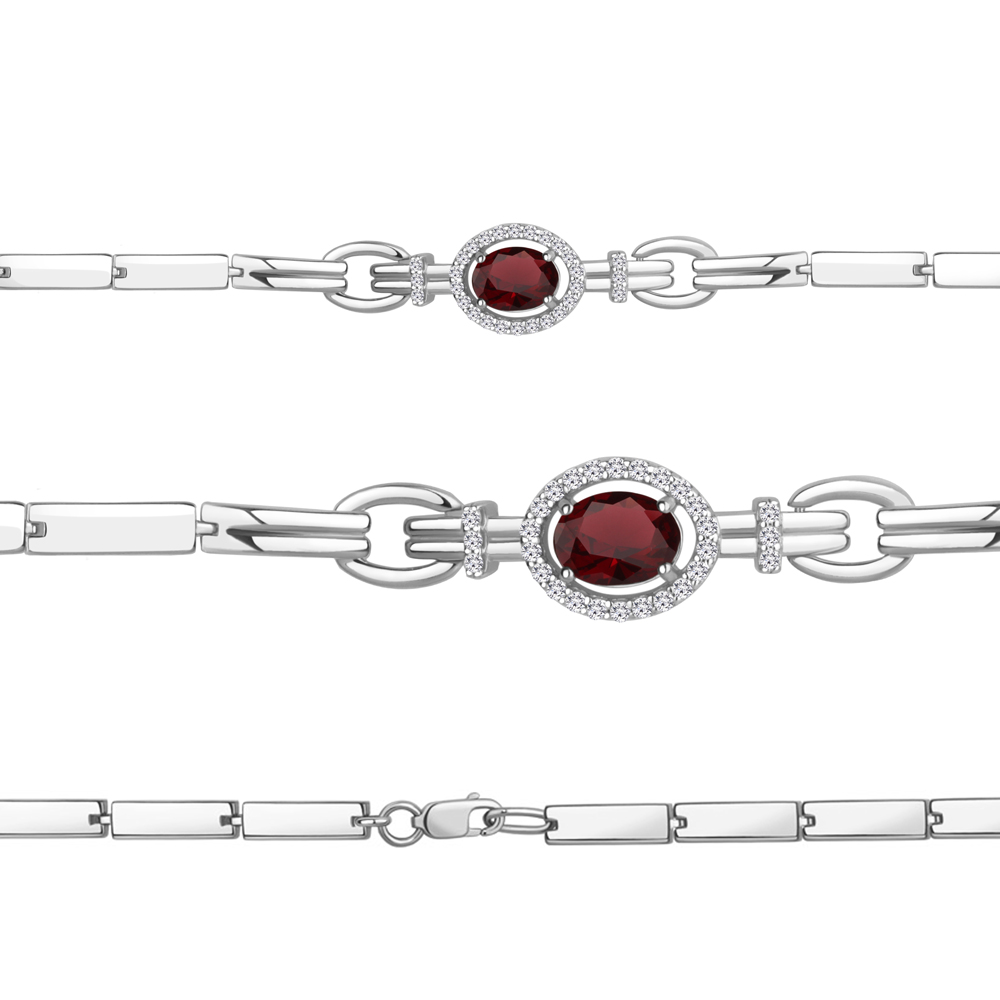 Браслет из серебра 925 пробы с гранатом и фианитами