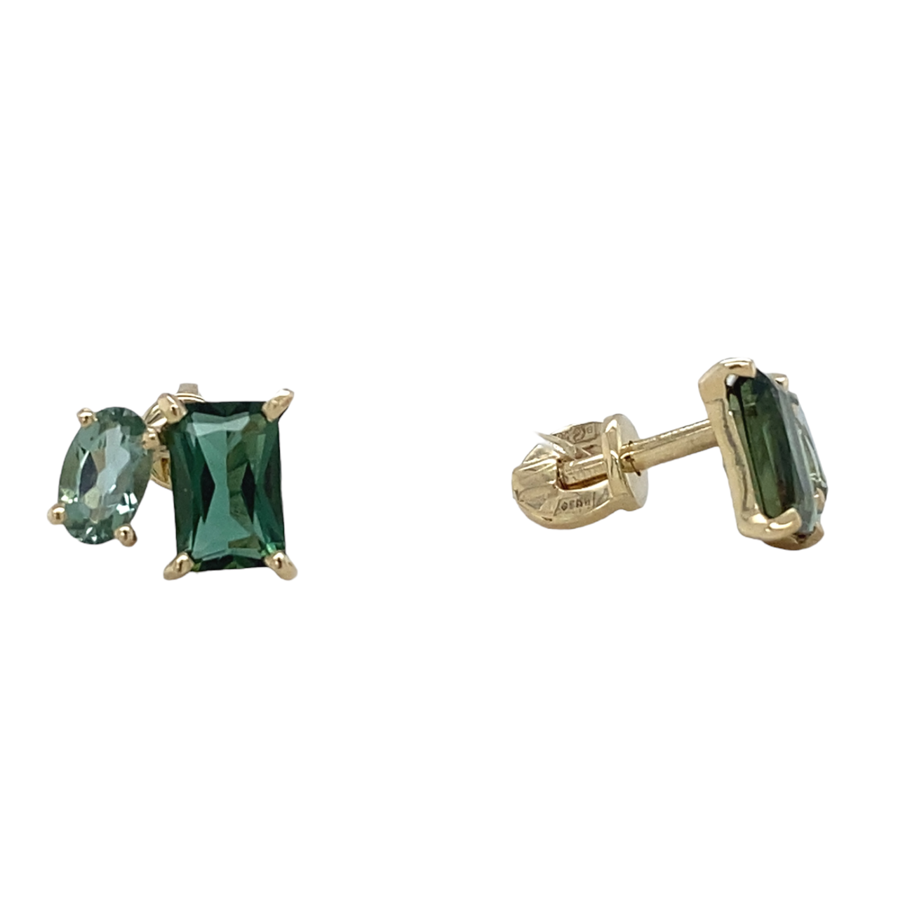 Пусеты (585 ж) аметист зеленый, турмалин ситалл