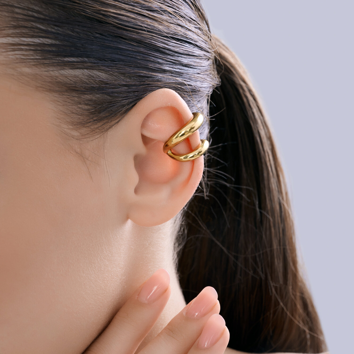 Моносерьга кафф из серебра 925 пробы с позолотой