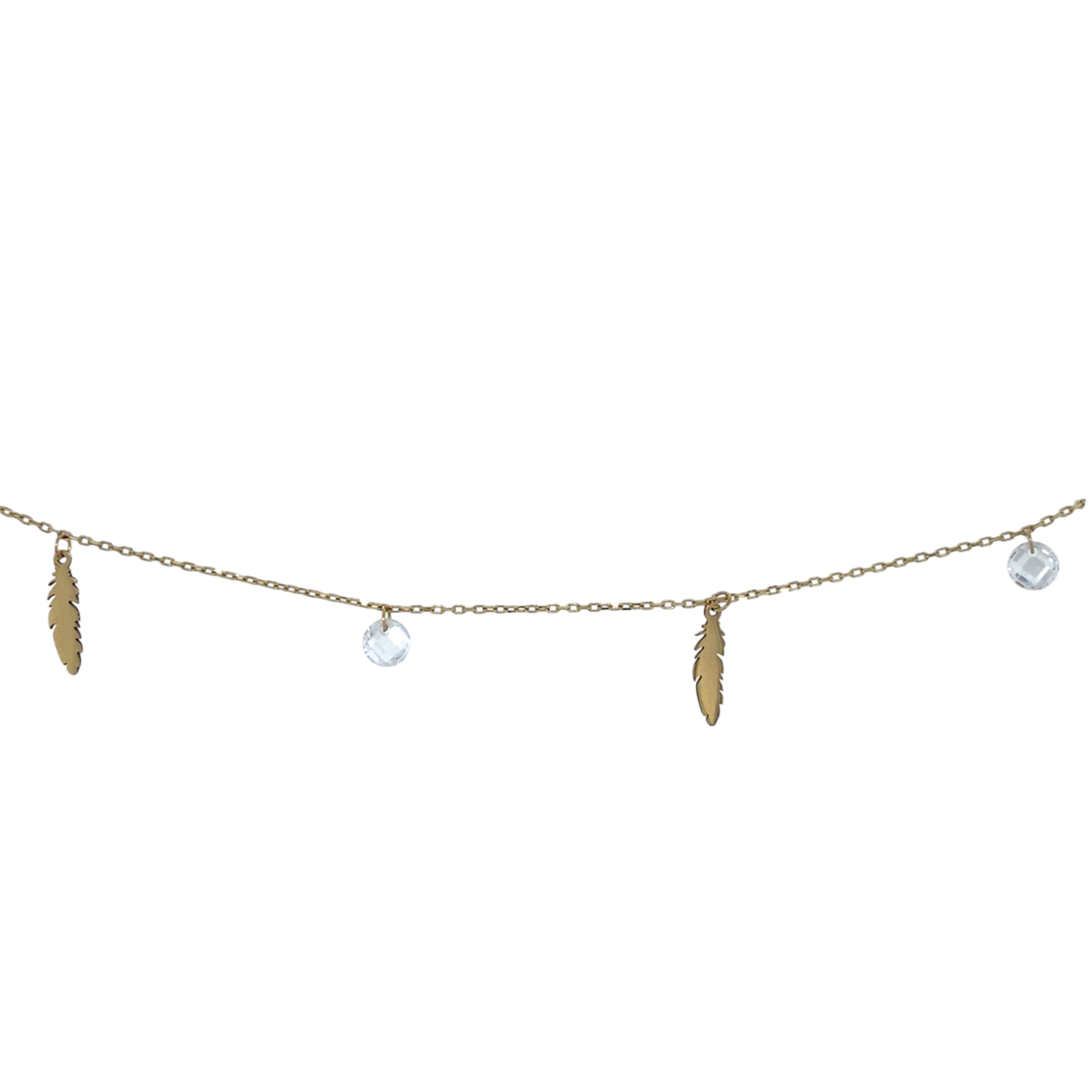 Браслет на ногу из желтого золота 585 пробы с фианитами