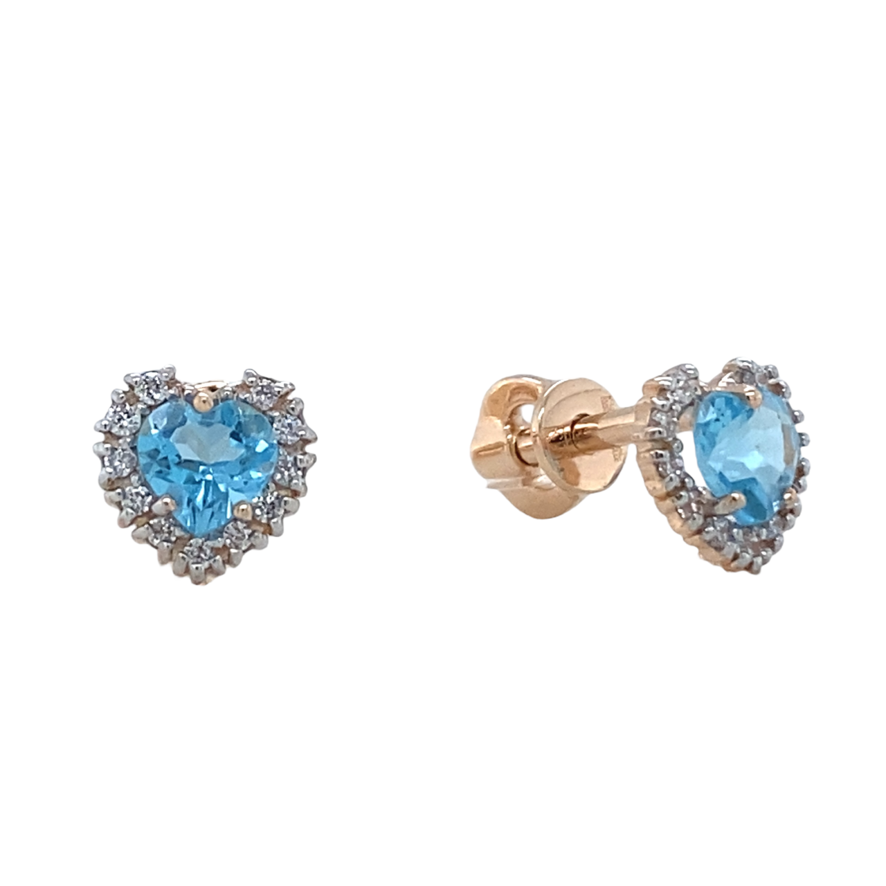 Серьги пусеты из золота 585 пробы с топазами и фианитами
