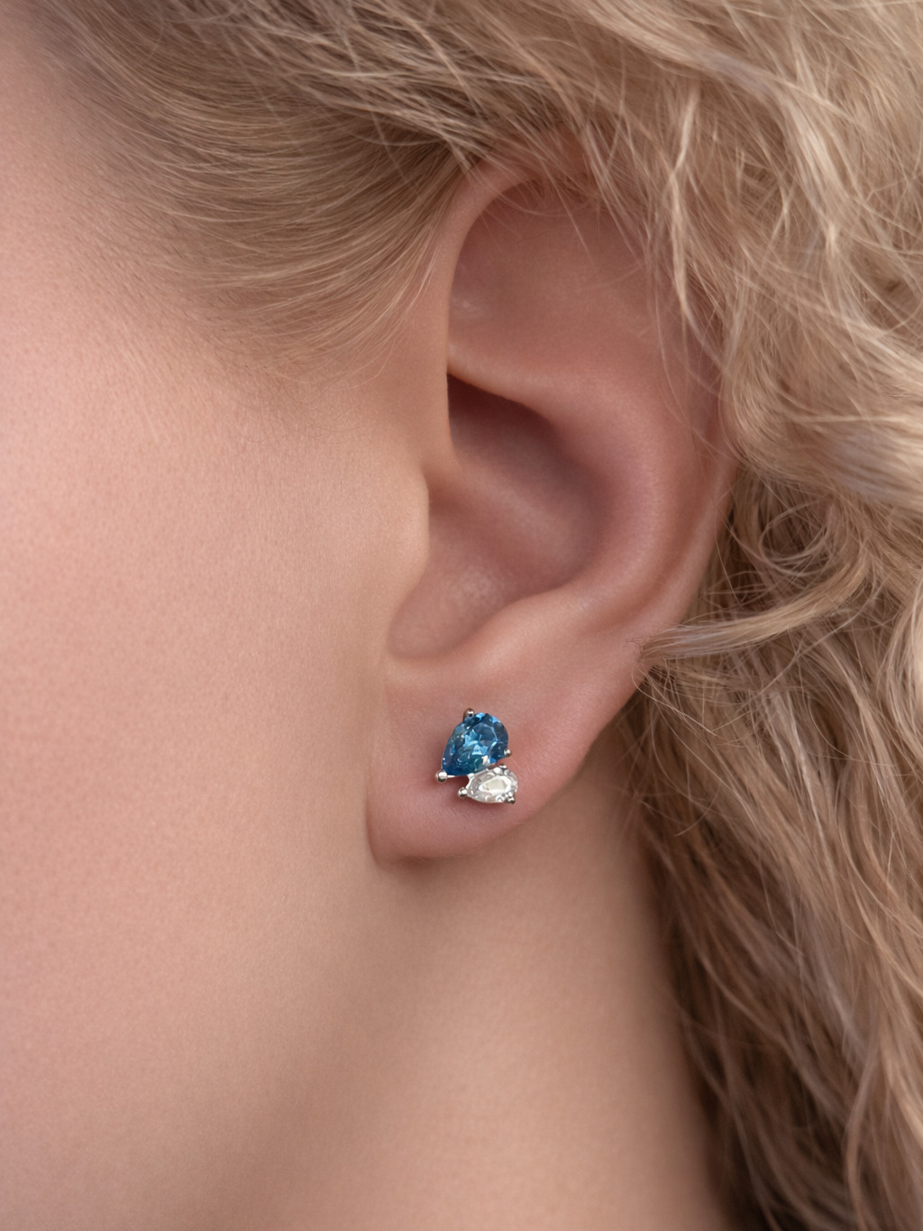 Серьги пусеты из белого золота 585 пробы с цветными фианитами