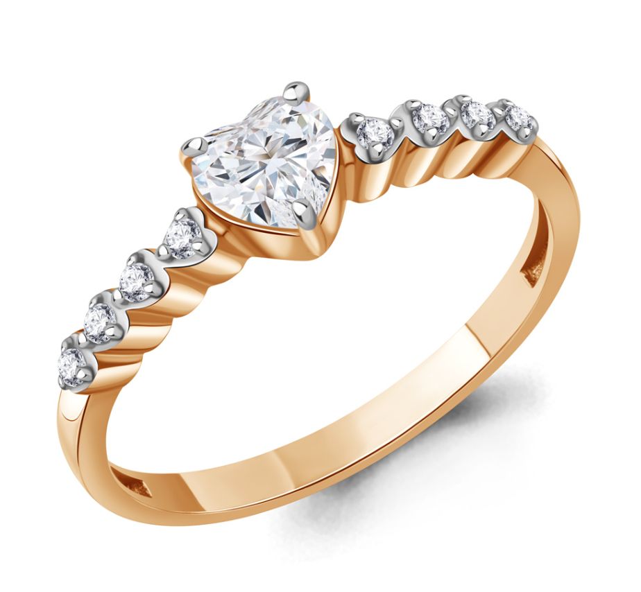 Кольцо из серебра 925 пробы с позолотой, с фианитами