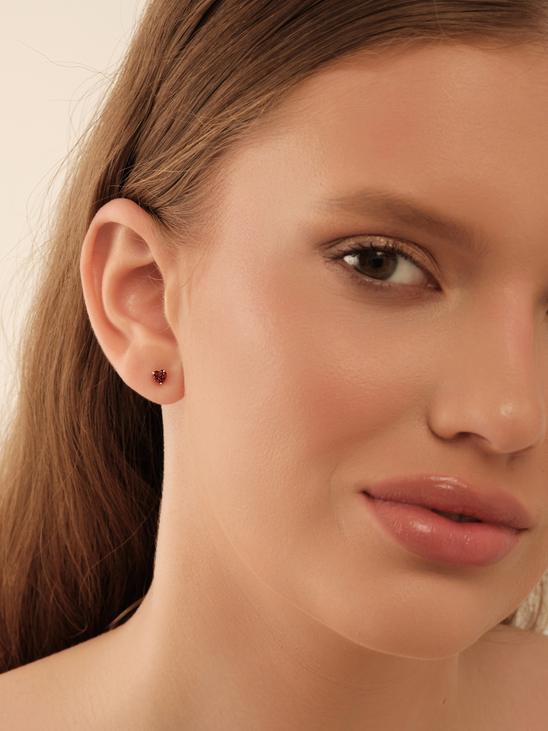 Серьги пусеты из золота 585 пробы с гранатом