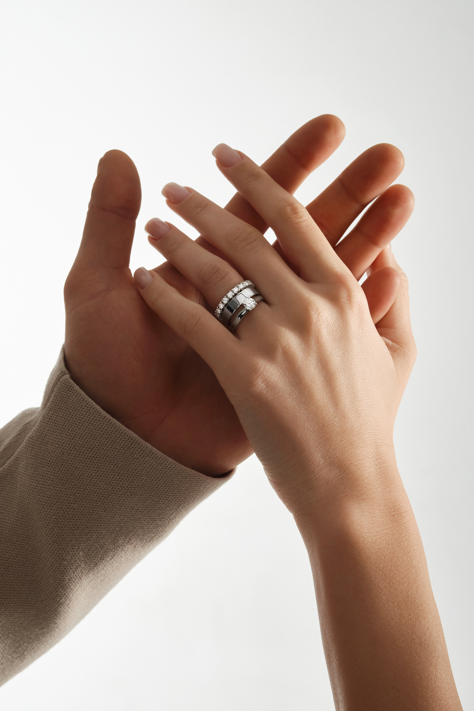Обручальное кольцо из белого золота 585 пробы с бриллиантами