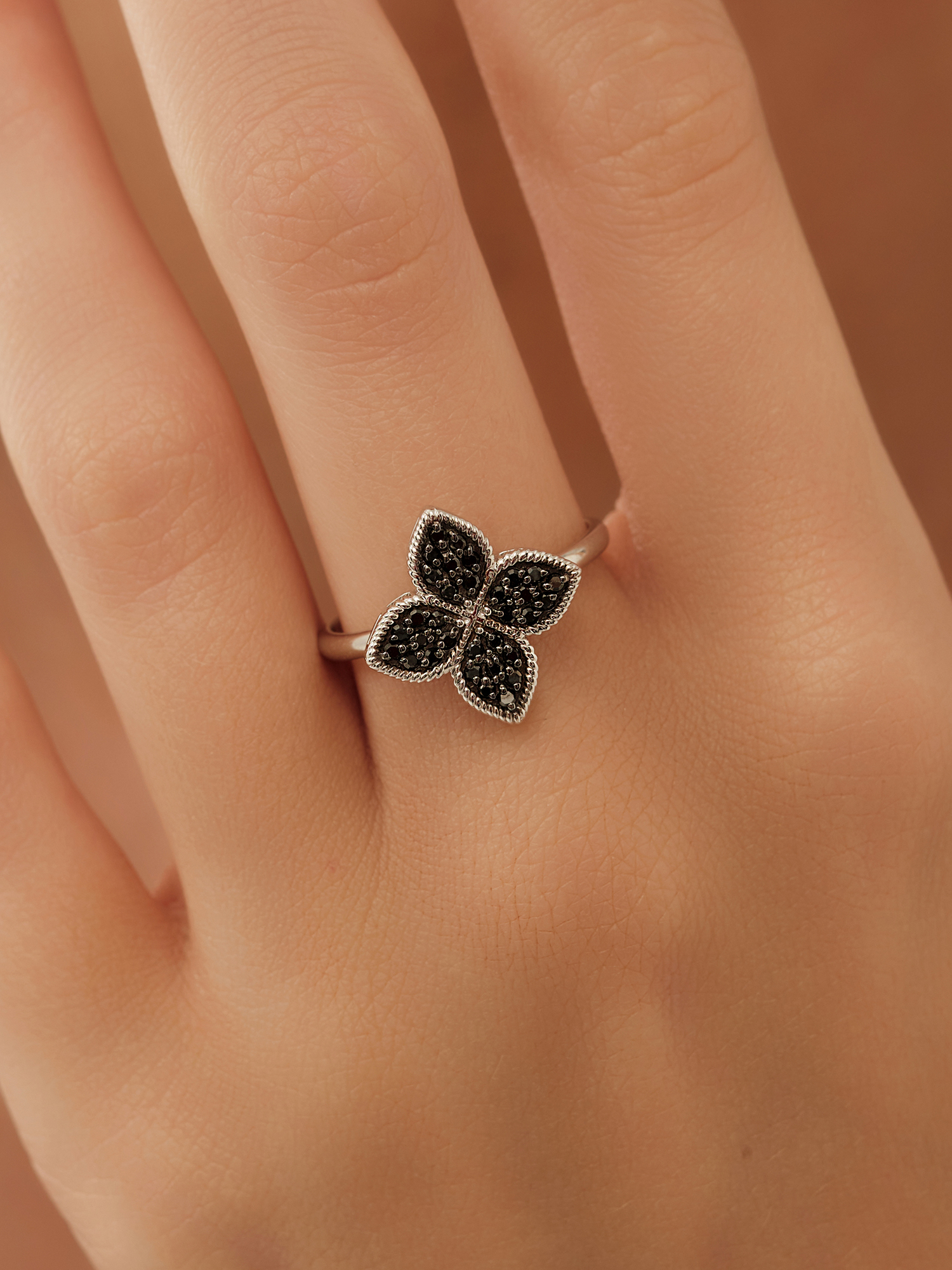 Кольцо из белого золота 585 пробы с черными бриллиантами