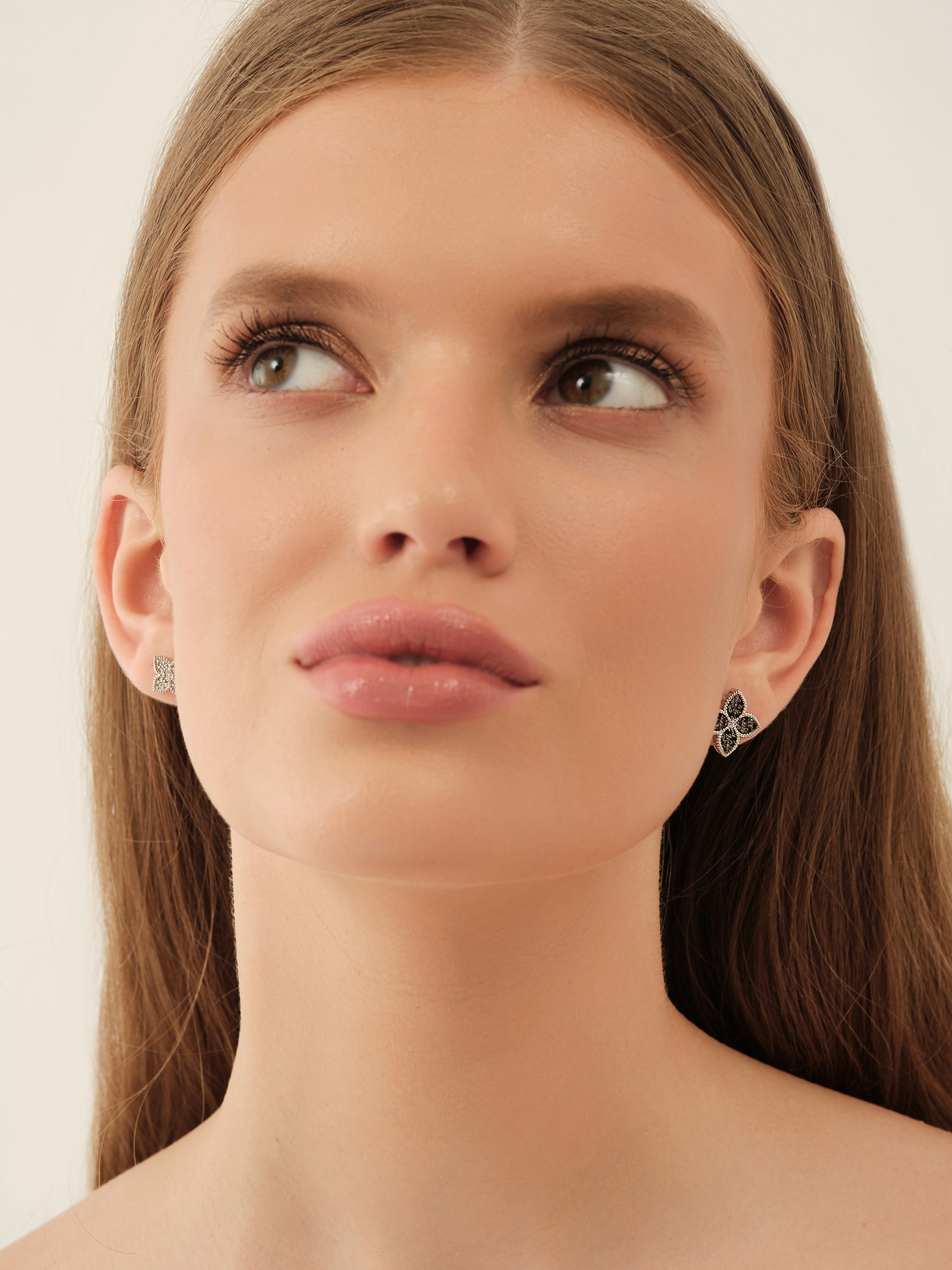 Серьги пусеты из белого золота 585 пробы с бриллиантами и черными бриллиантами