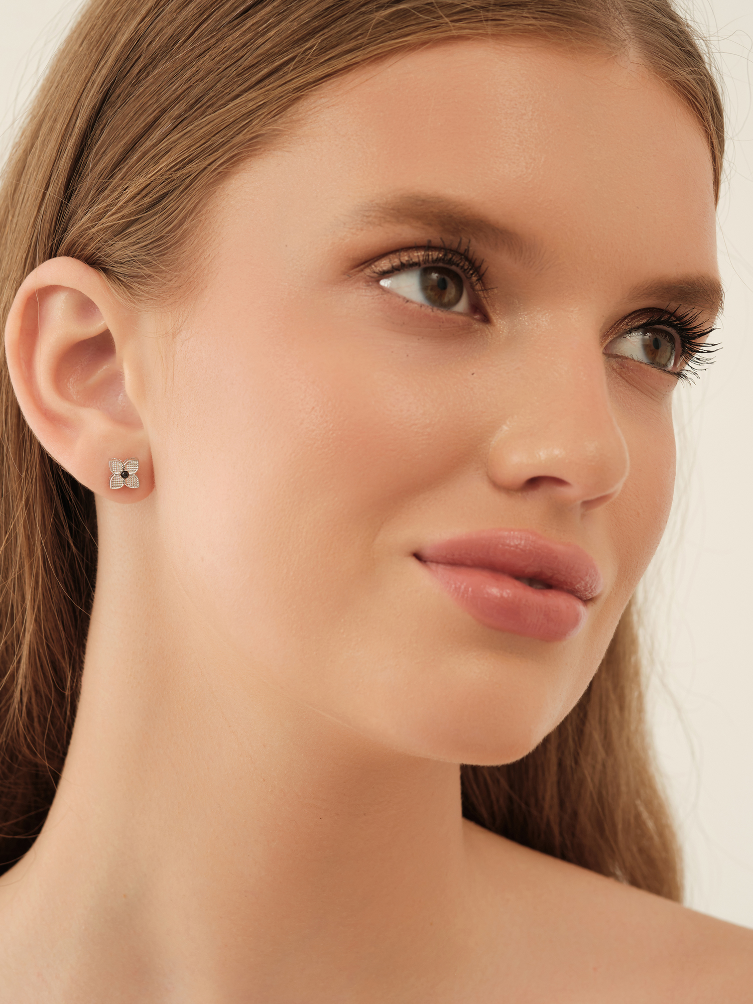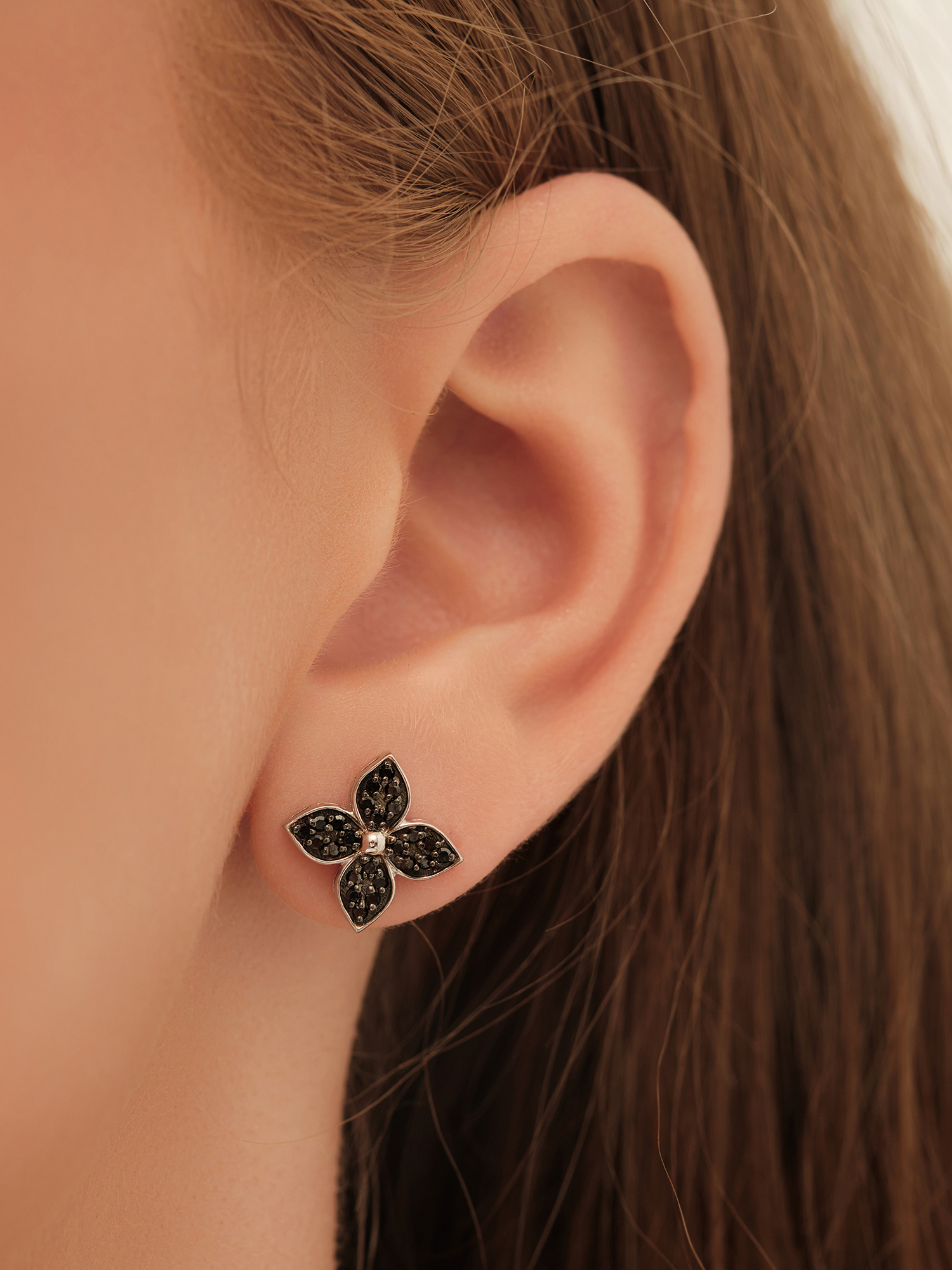 Серьги пусеты из белого золота 585 пробы с черными бриллиантами