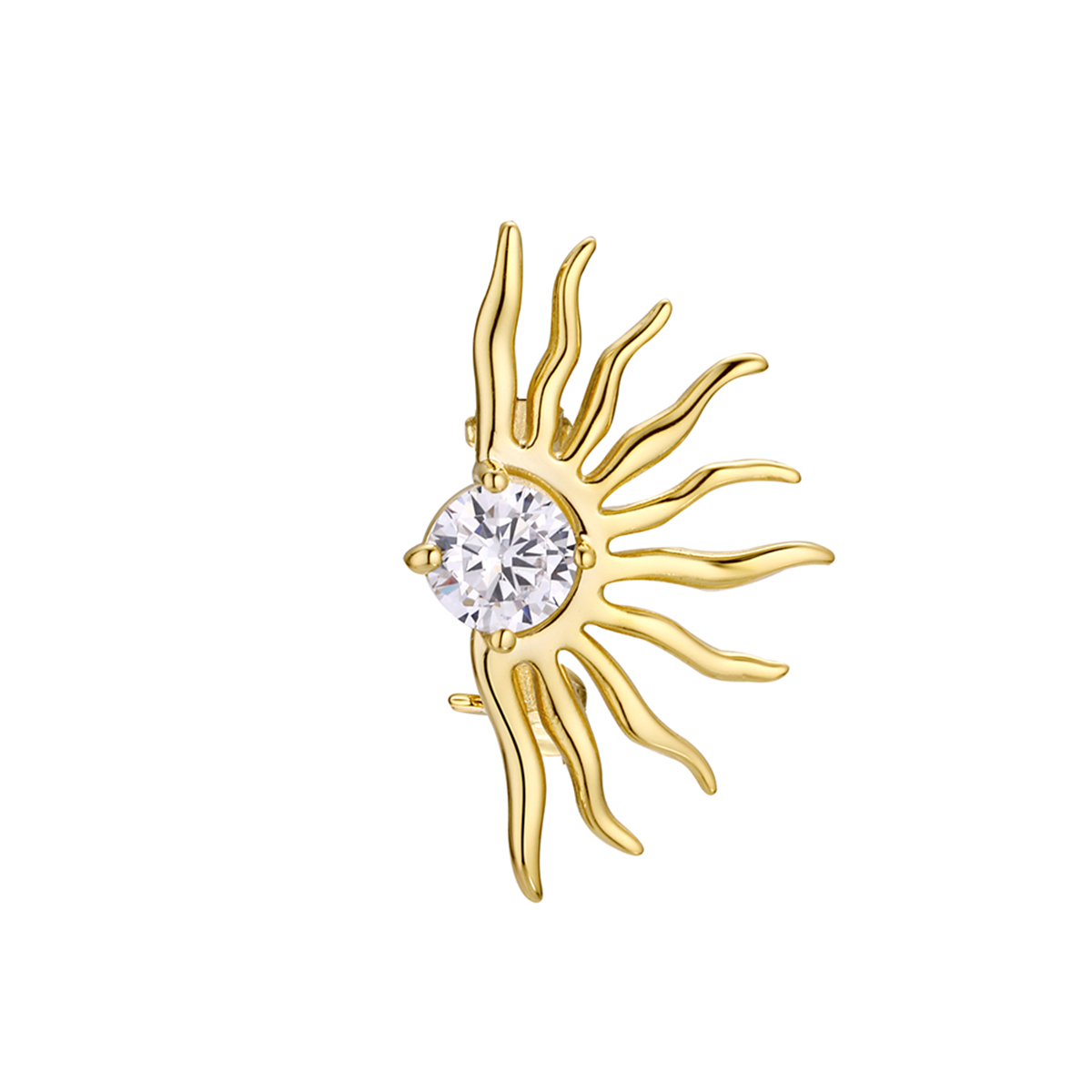 Брошь из серебра 925 пробы с позолотой, с фианитами