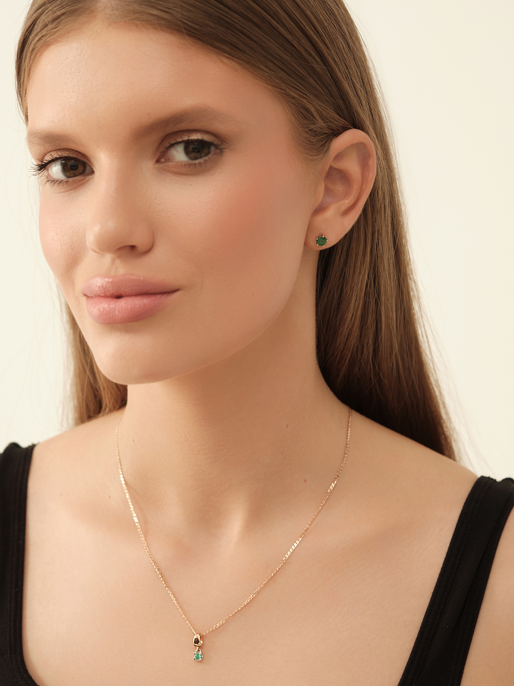 Пусеты (585) изумруд обл.
