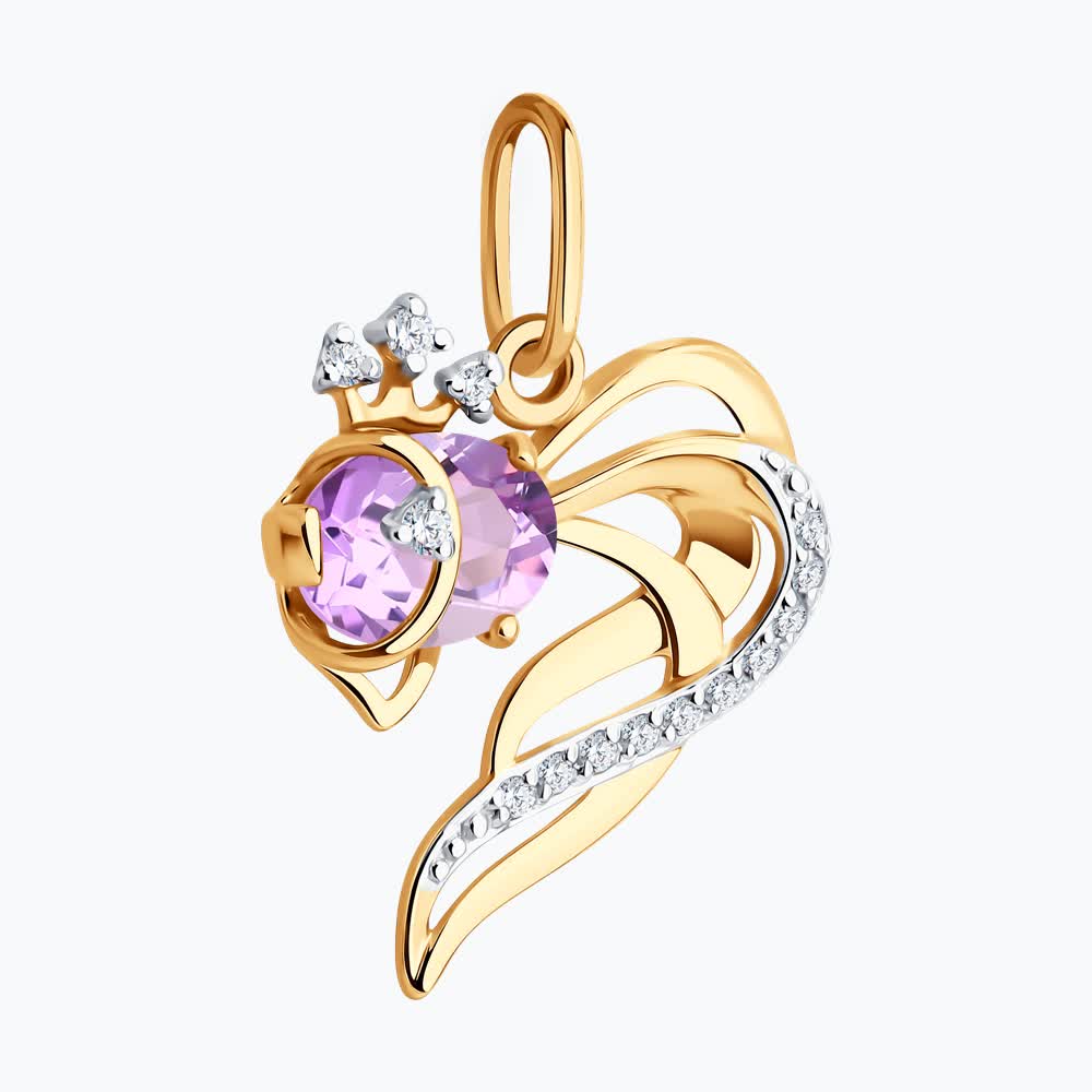 Подвеска из золота 585 пробы с аметистом и фианитами