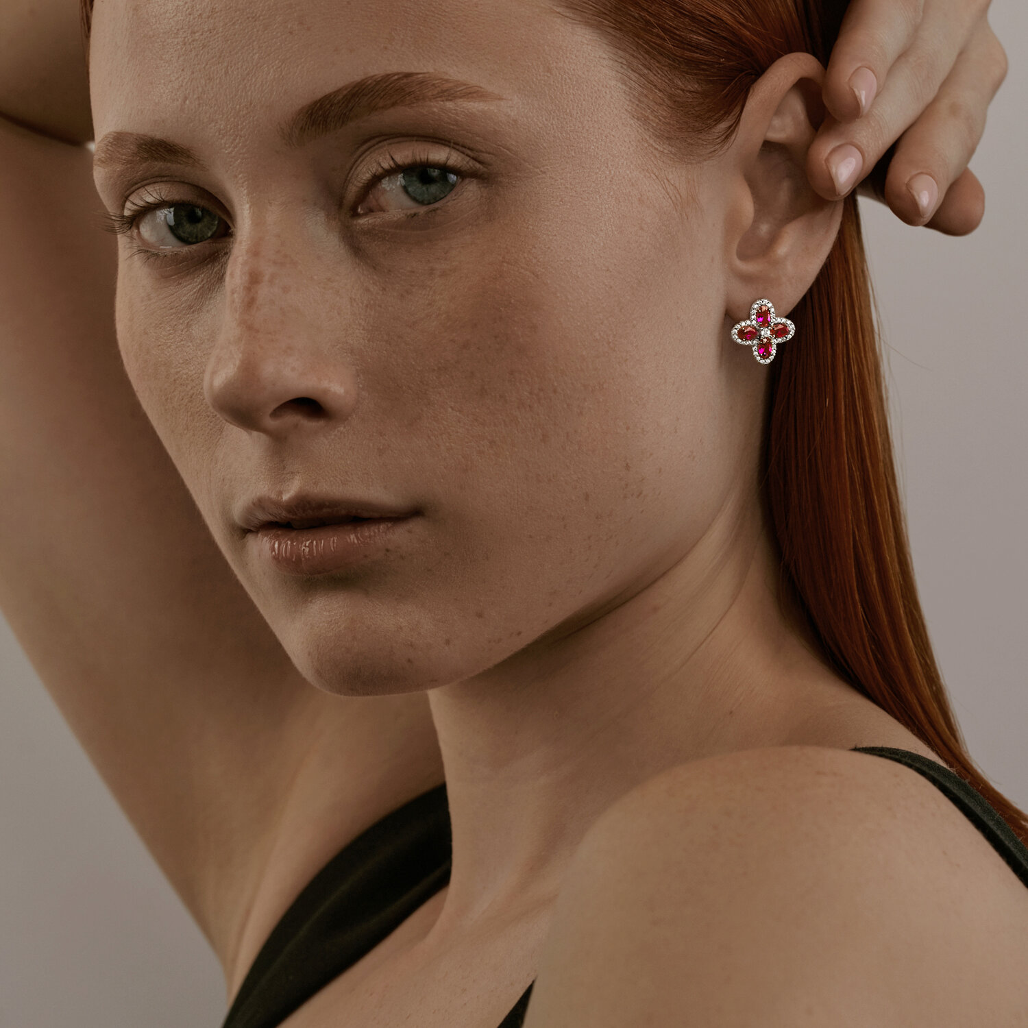Серьги из серебра 925 пробы с искусственным рубинами и фианитами