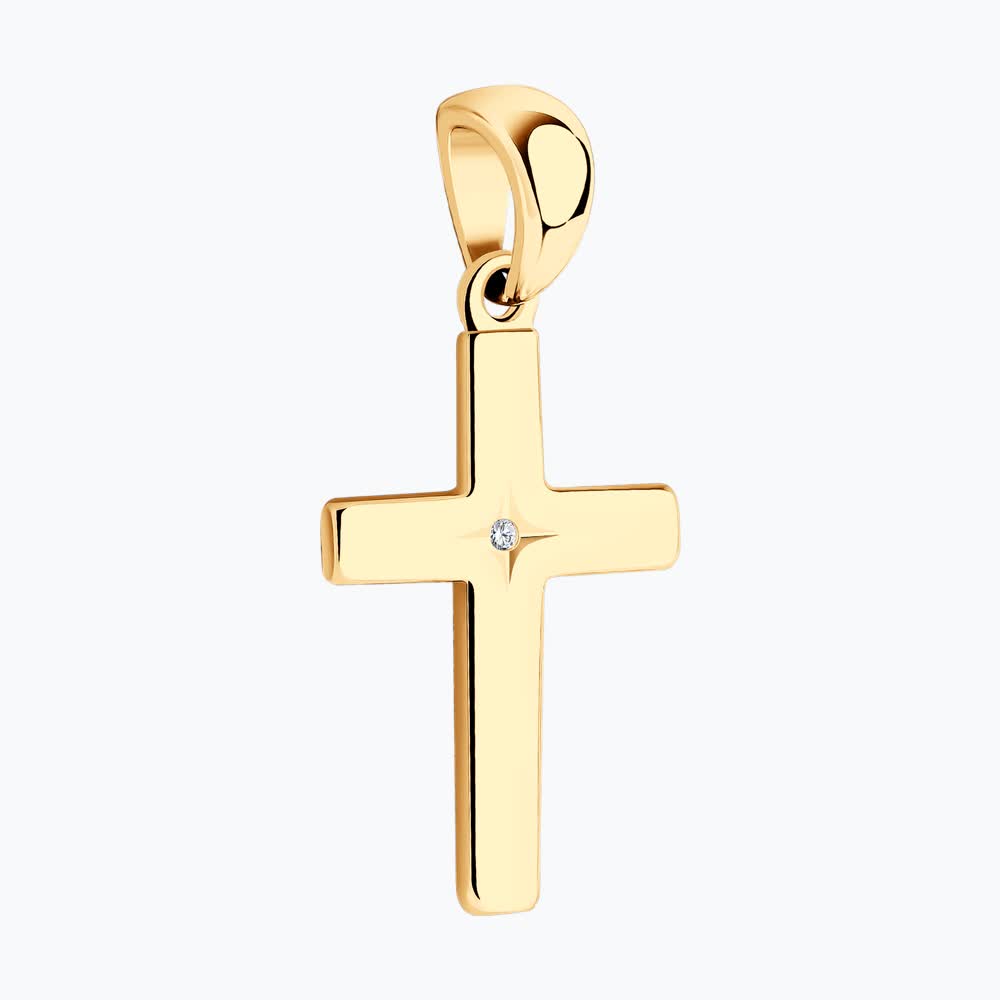 Подвеска декоративный крест из серебра 925 пробы с позолотой и с бриллиантами