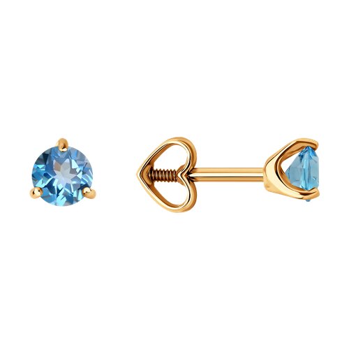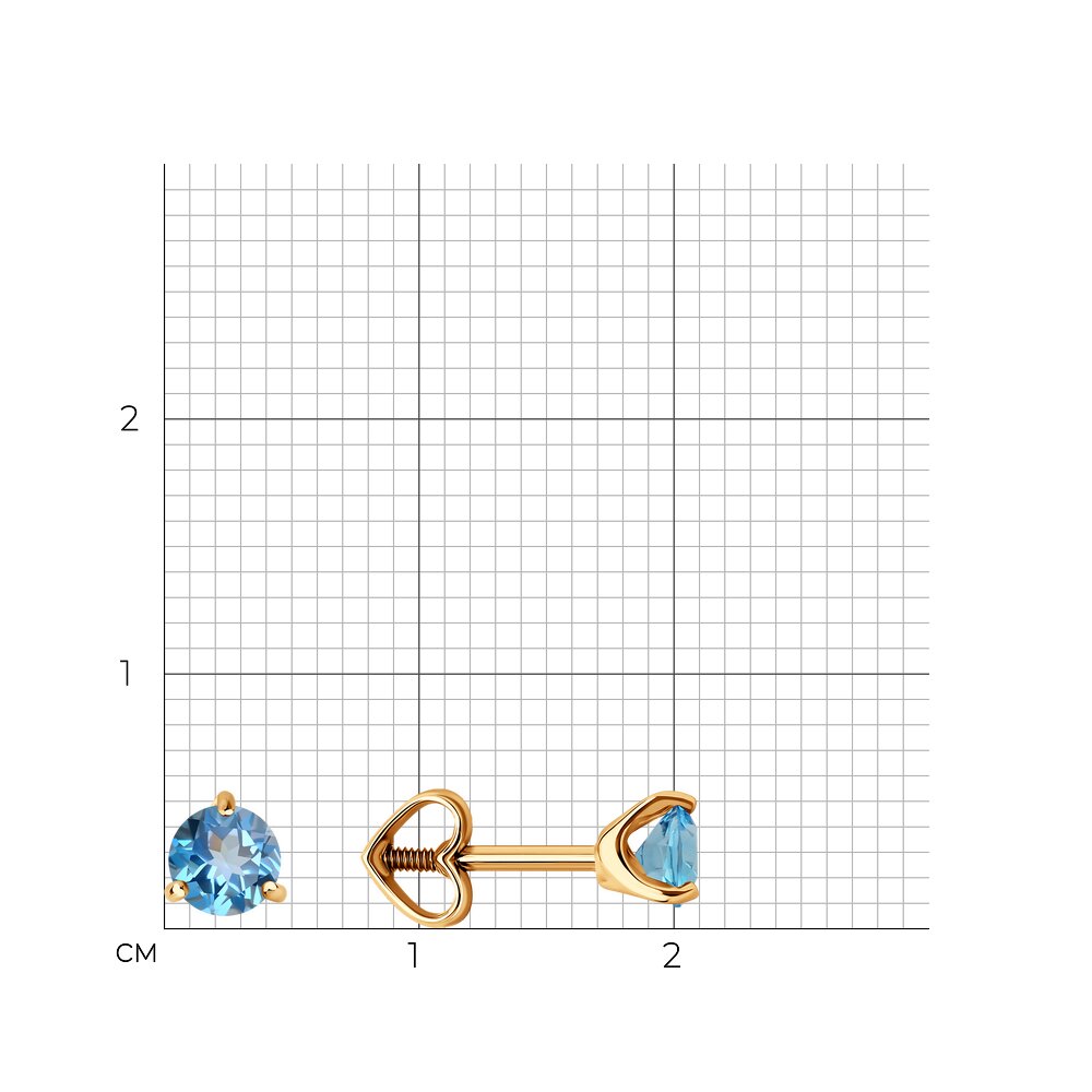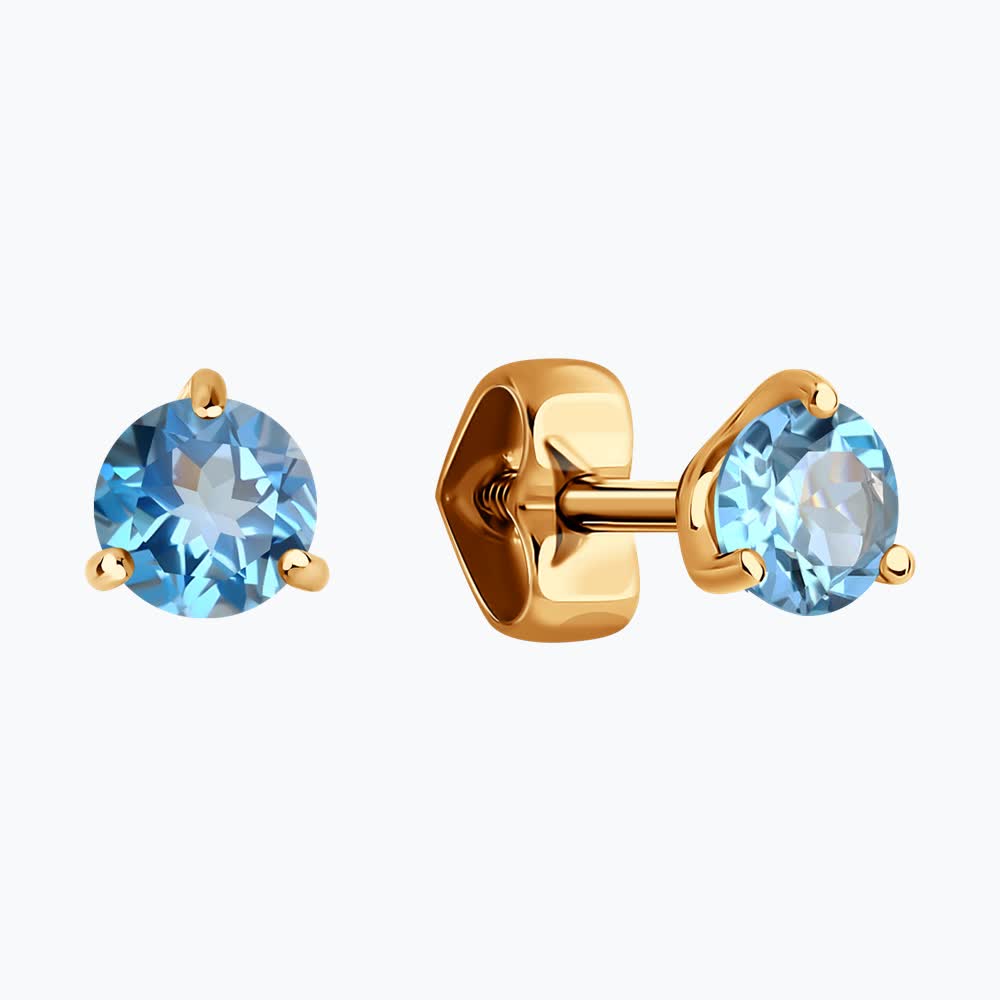 Серьги пусеты из золота 585 пробы с топазами