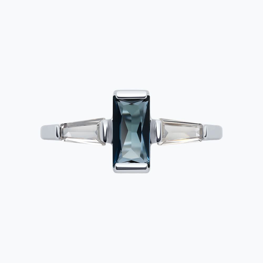 Кольцо из белого золота 585 пробы с топазами London Blue и фианитами