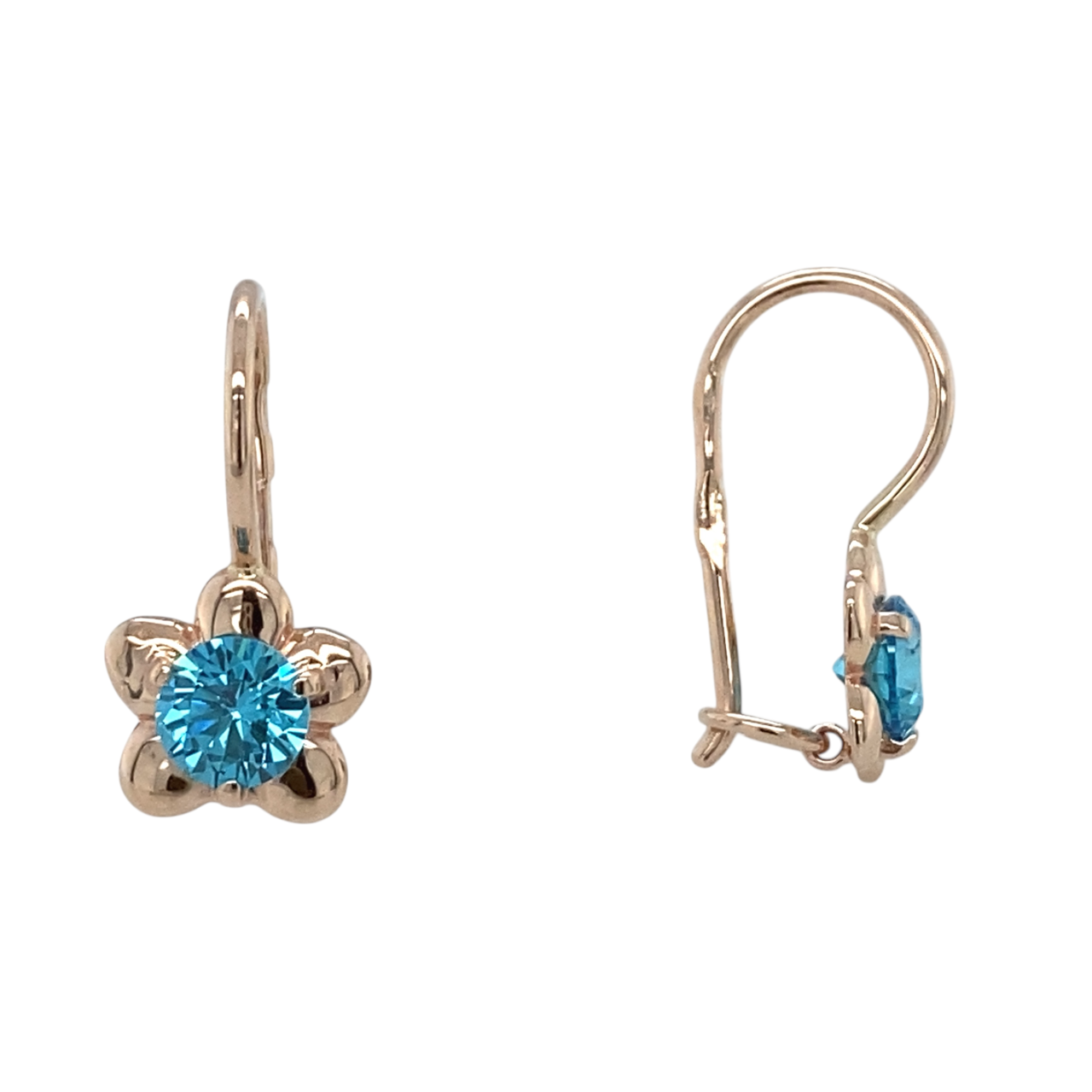 Серьги петельки из золота 585 пробы с цветными фианитами