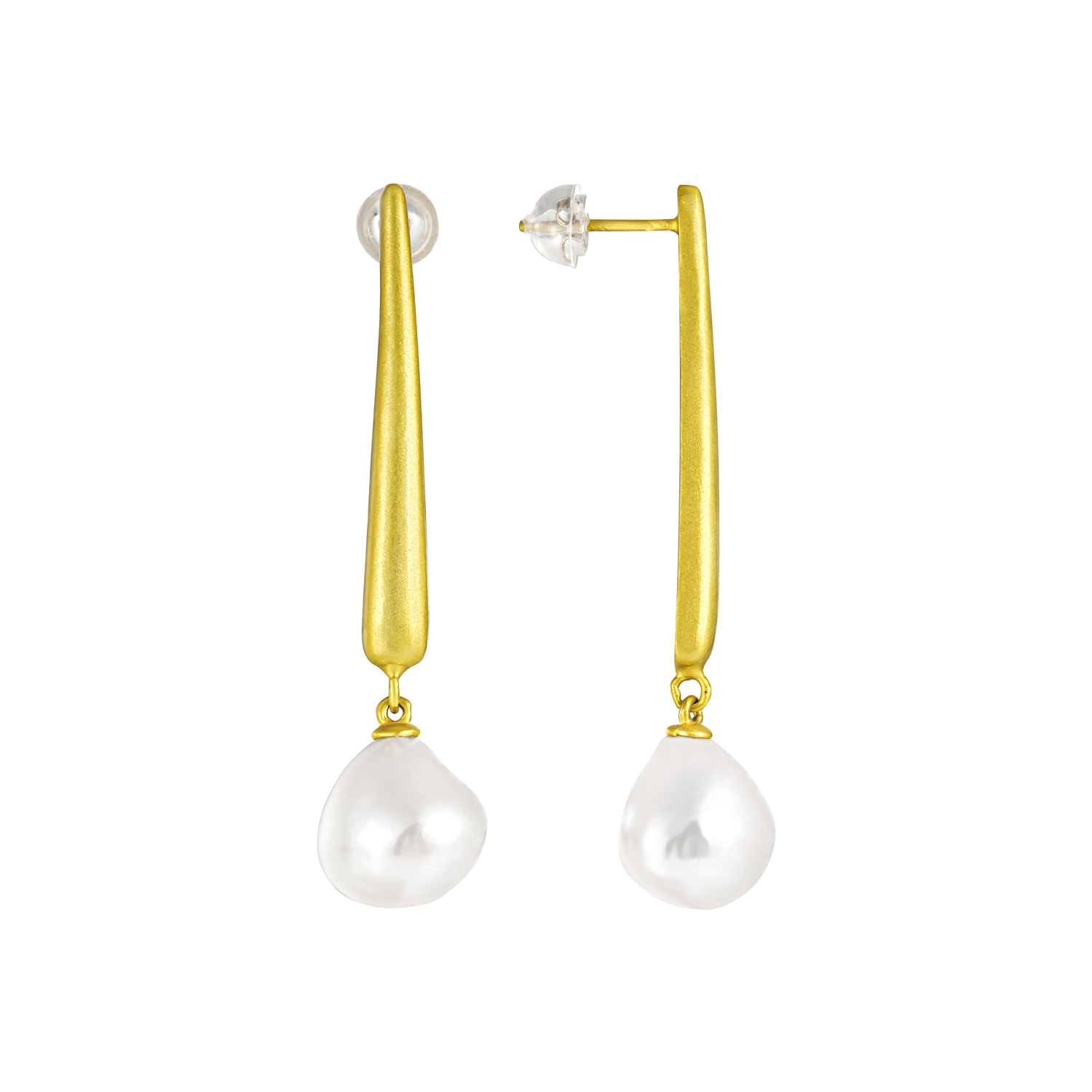 Серьги пусеты из серебра 925 пробы с позолотой, с жемчугом