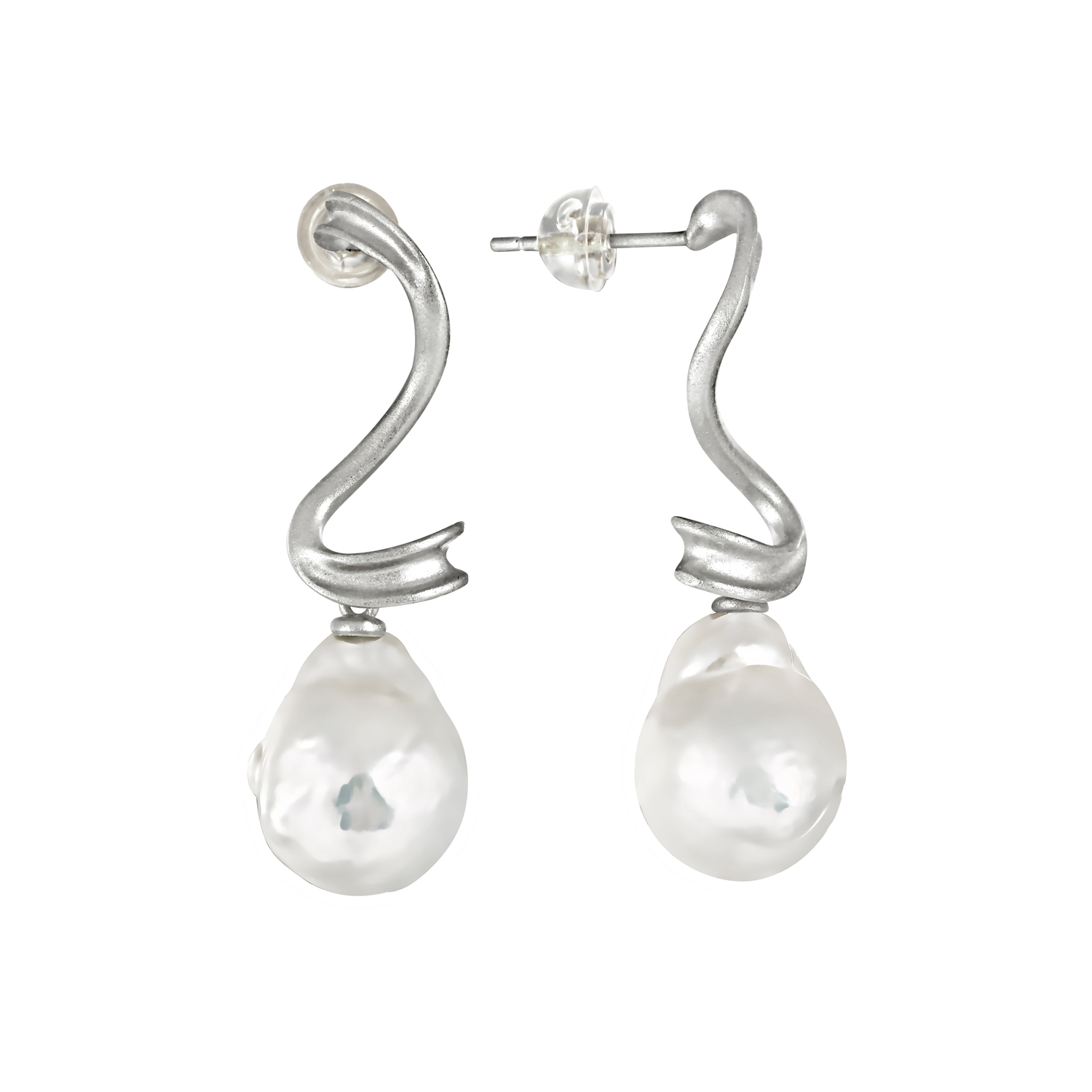 Серьги пусеты из серебра 925 пробы с жемчугом