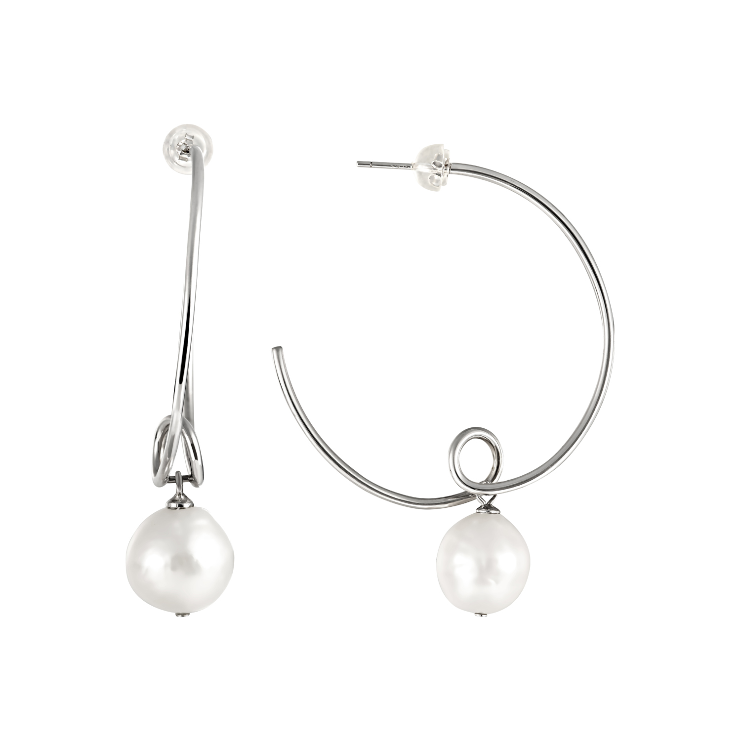 Серьги пусеты из серебра 925 пробы с жемчугом