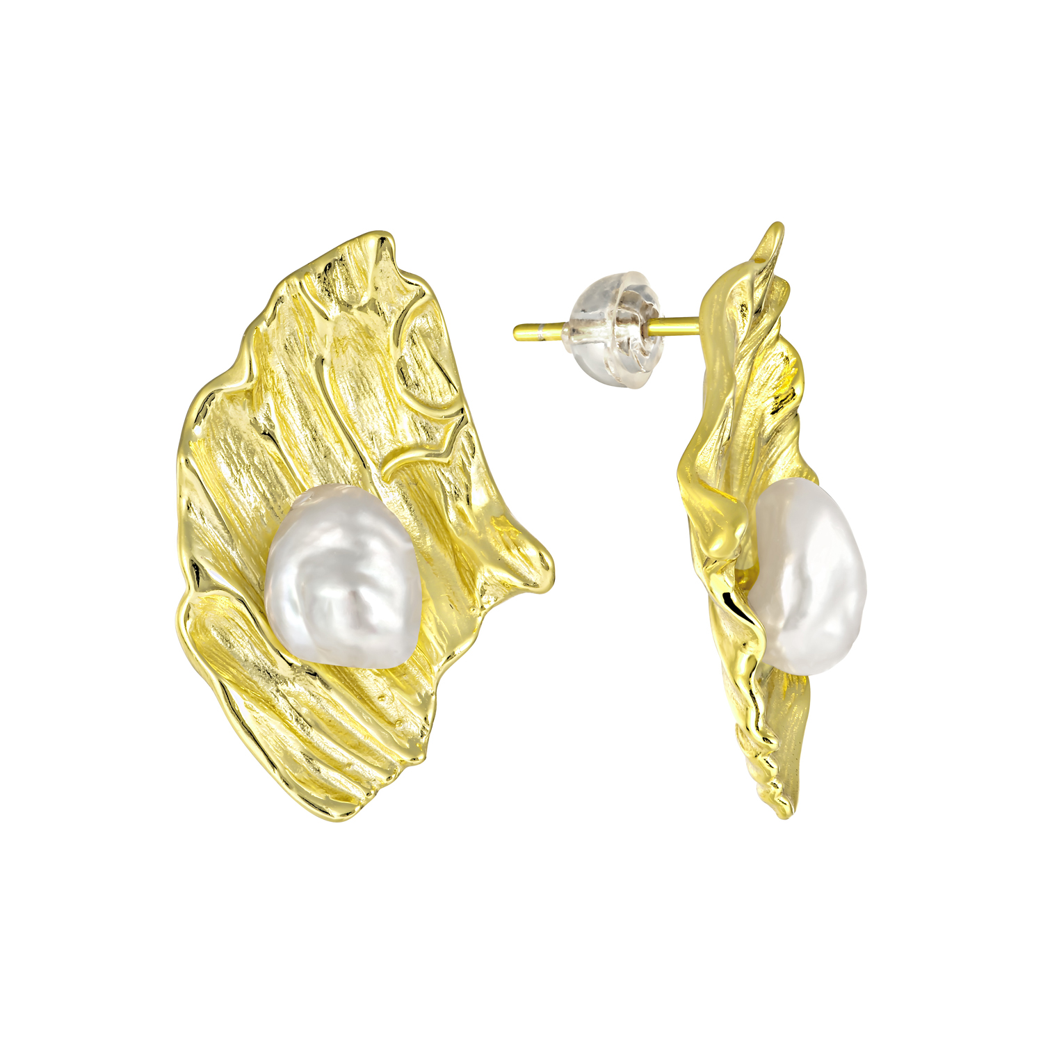 Серьги пусеты из серебра 925 пробы с позолотой, с жемчугом