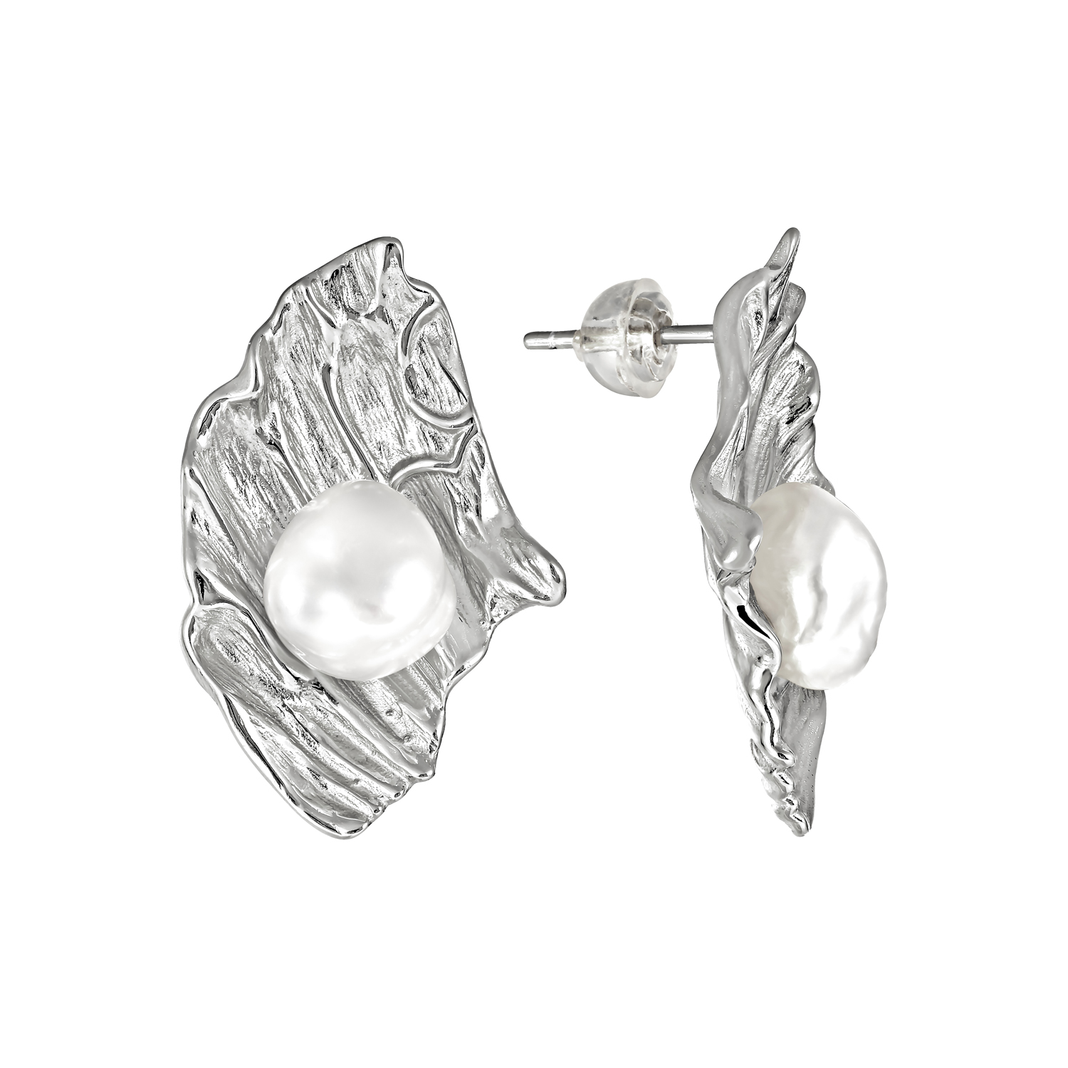 Серьги пусеты из серебра 925 пробы с жемчугом