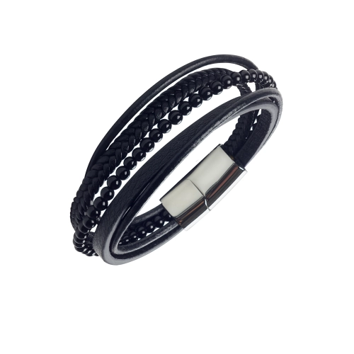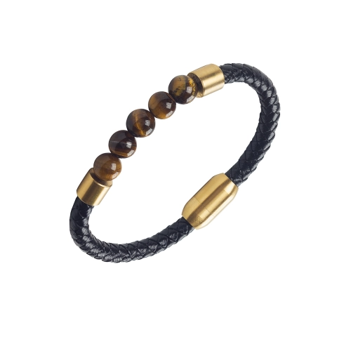 Браслет из стали с тигровым глазом, вулканической лавой и гематитом