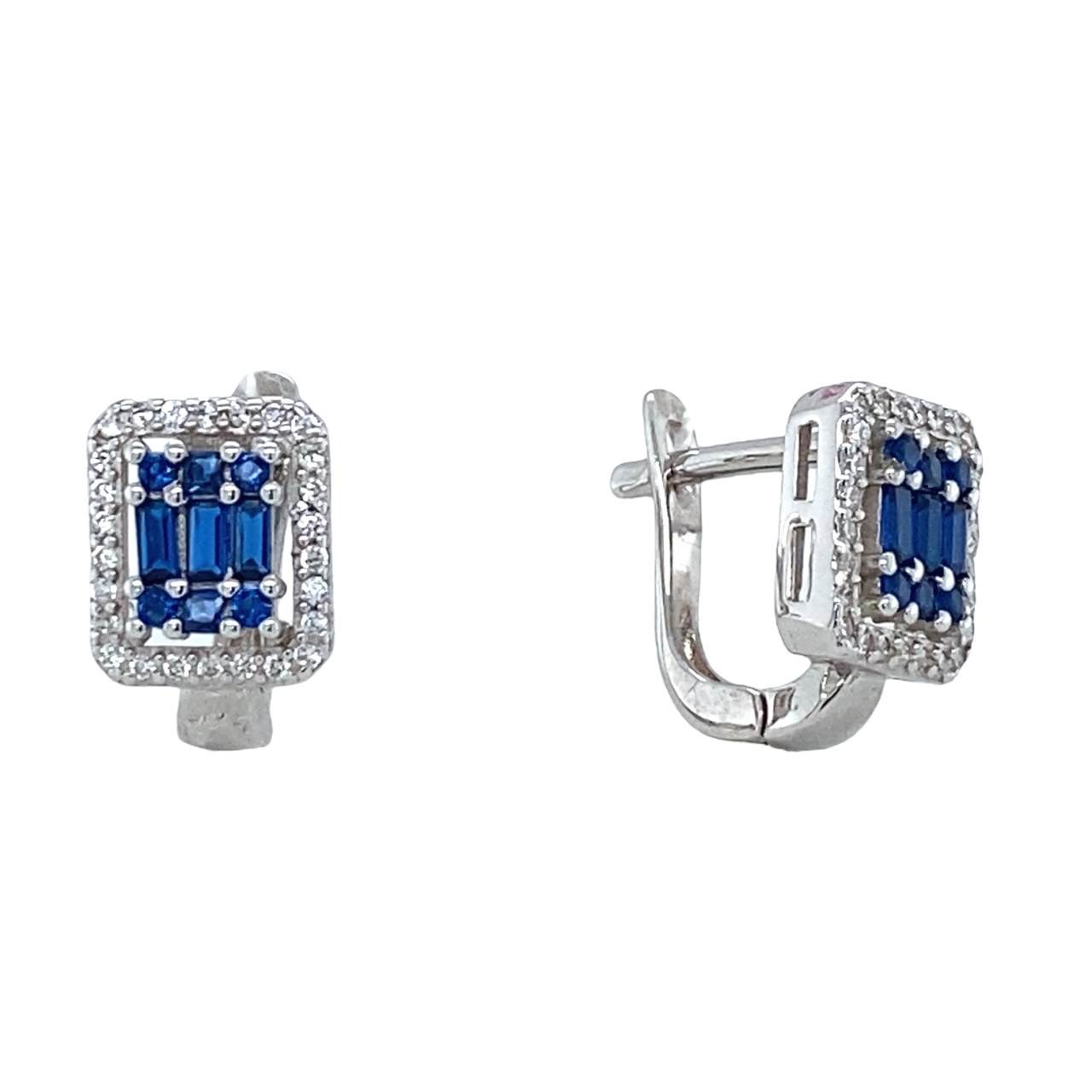 Серьги из серебра 925 пробы с искусвтвенным сапфиром и фианитами