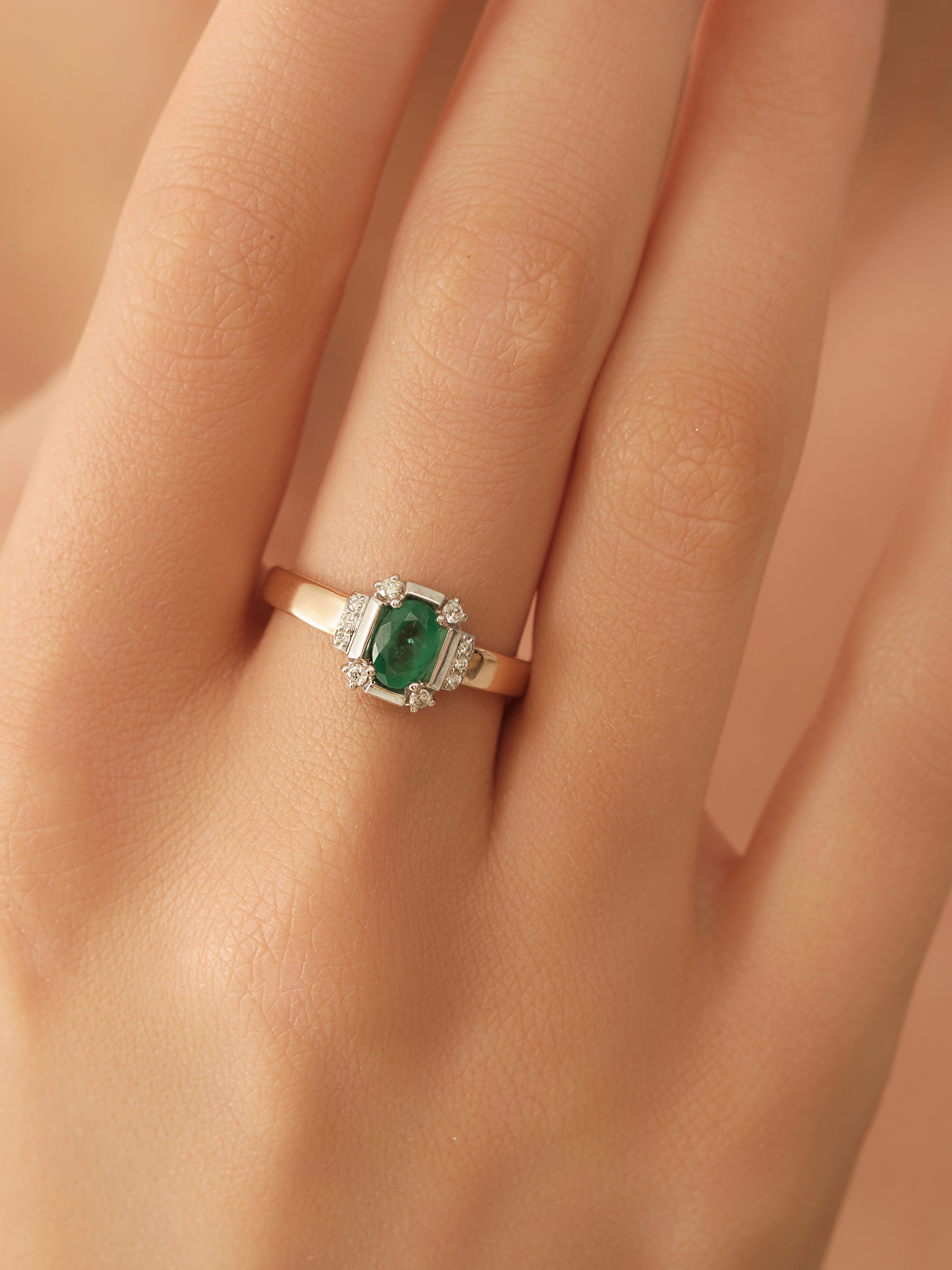 Кольцо из золота 585 пробы с изумрудом и бриллиантами