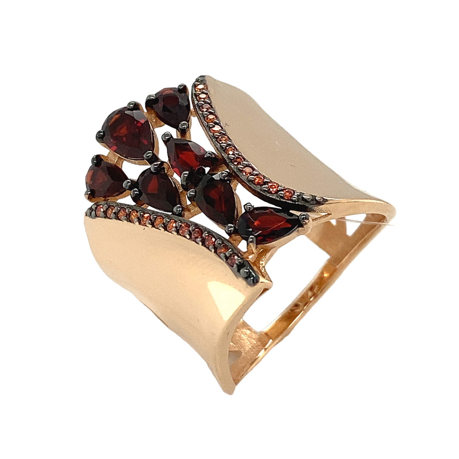 Кольцо из золота 585 пробы с гранатом и фианитами