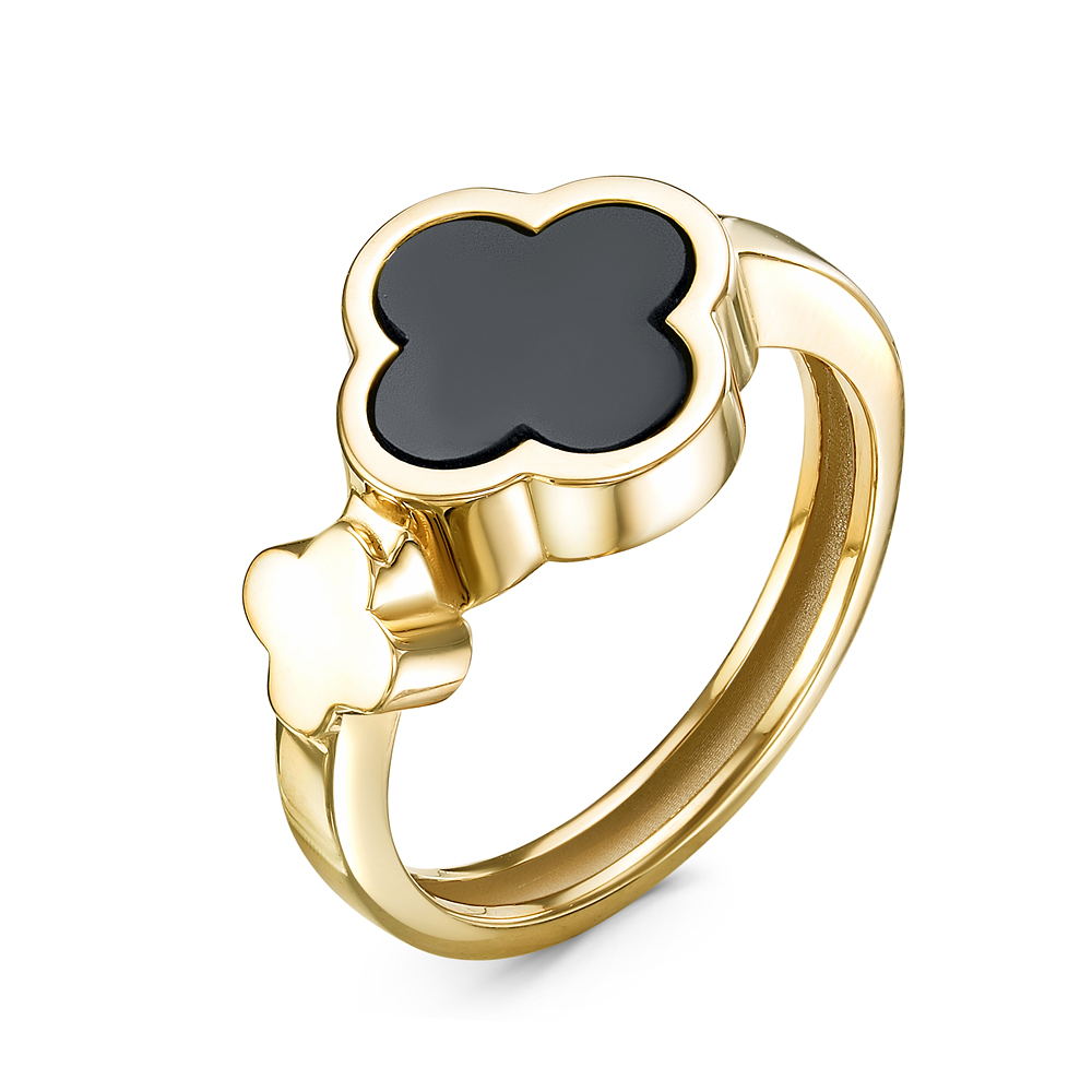 Кольцо из желтого золота 585 пробы с ониксом