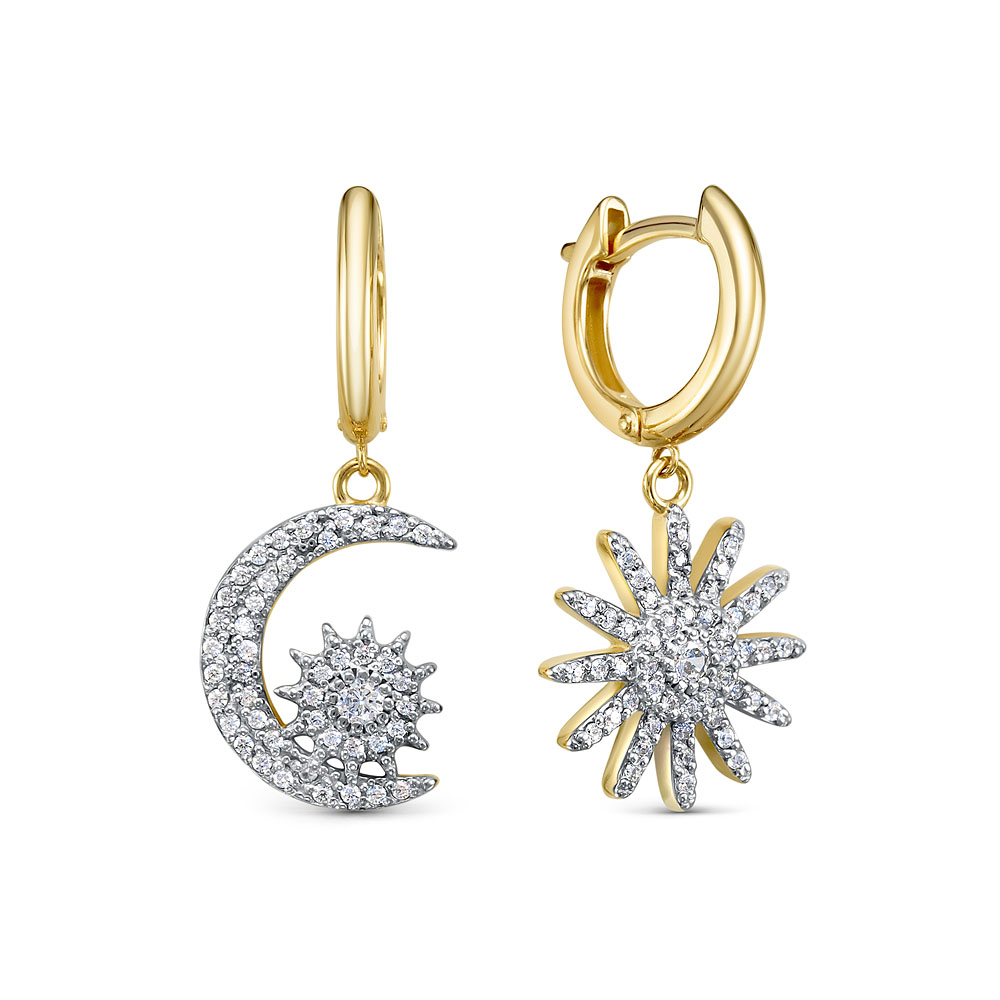 Серьги из желтого золота 585 пробы с фианитами