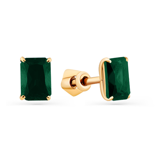 серьги пусеты из желтого золота 585 пробы с искусственными турмалинами
