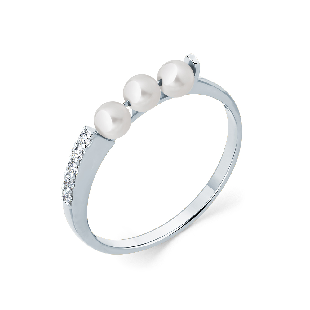 Кольцо из белого золота 585 пробы с жемчугом и бриллиантами