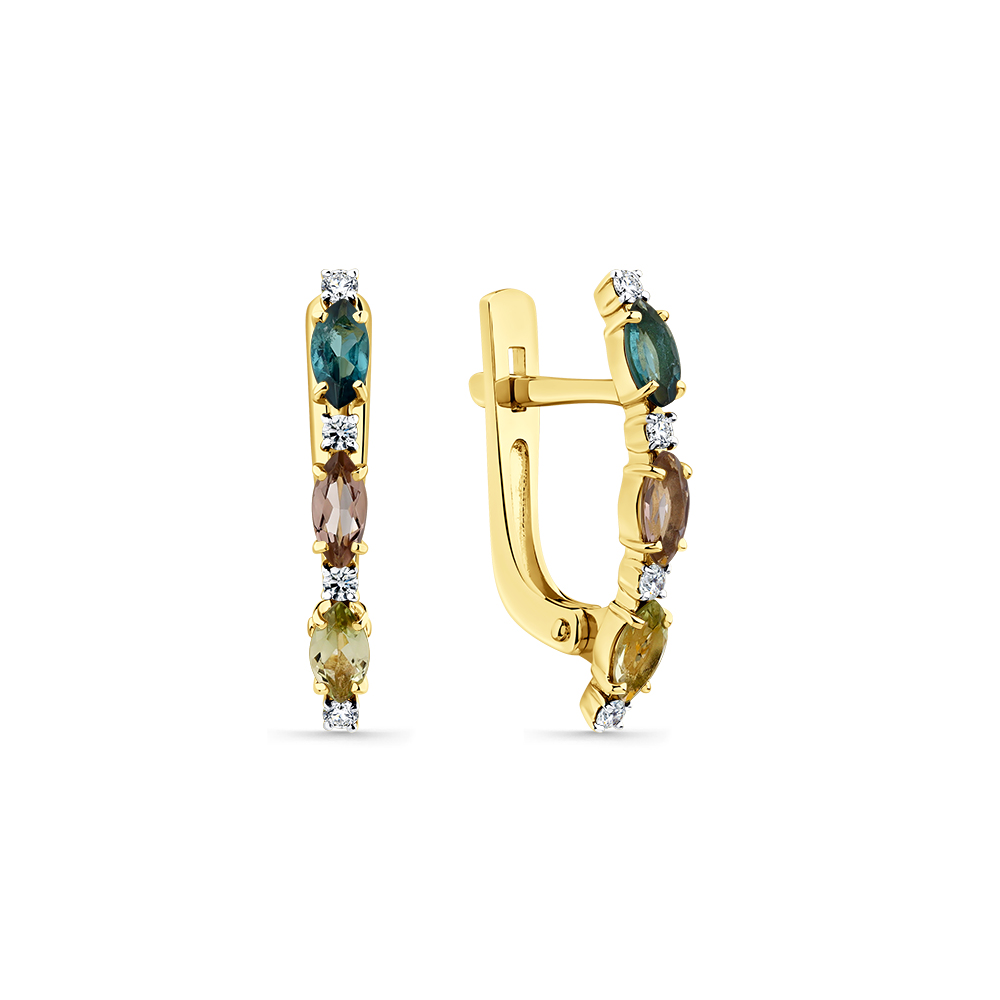 Серьги из желтого золота 585 пробы с турмалином и бриллиантом