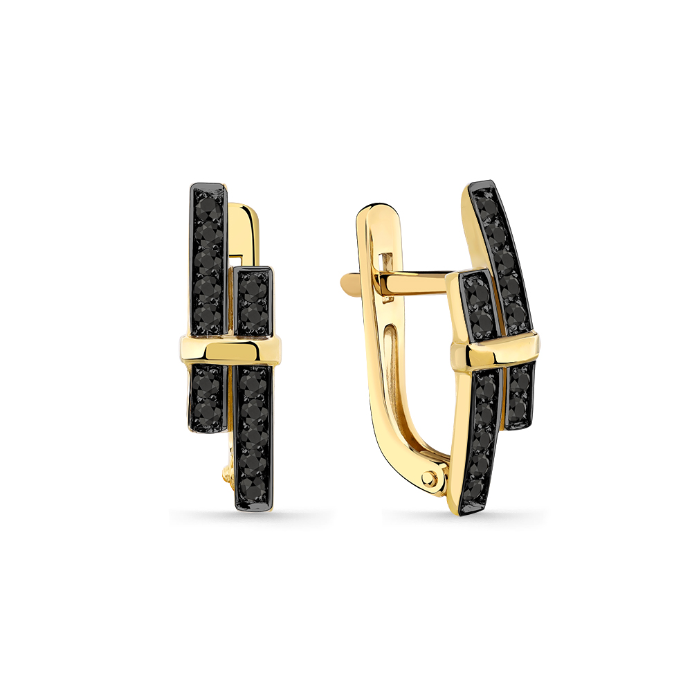 Серьги из желтого золота 585 пробы с черными бриллиантами