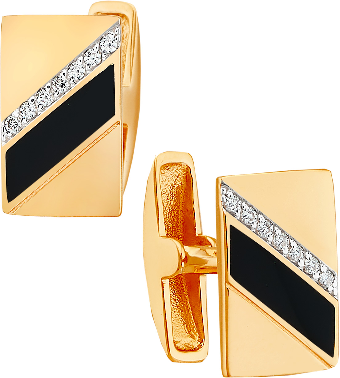 Запонки из золота 585 пробы с фианитами