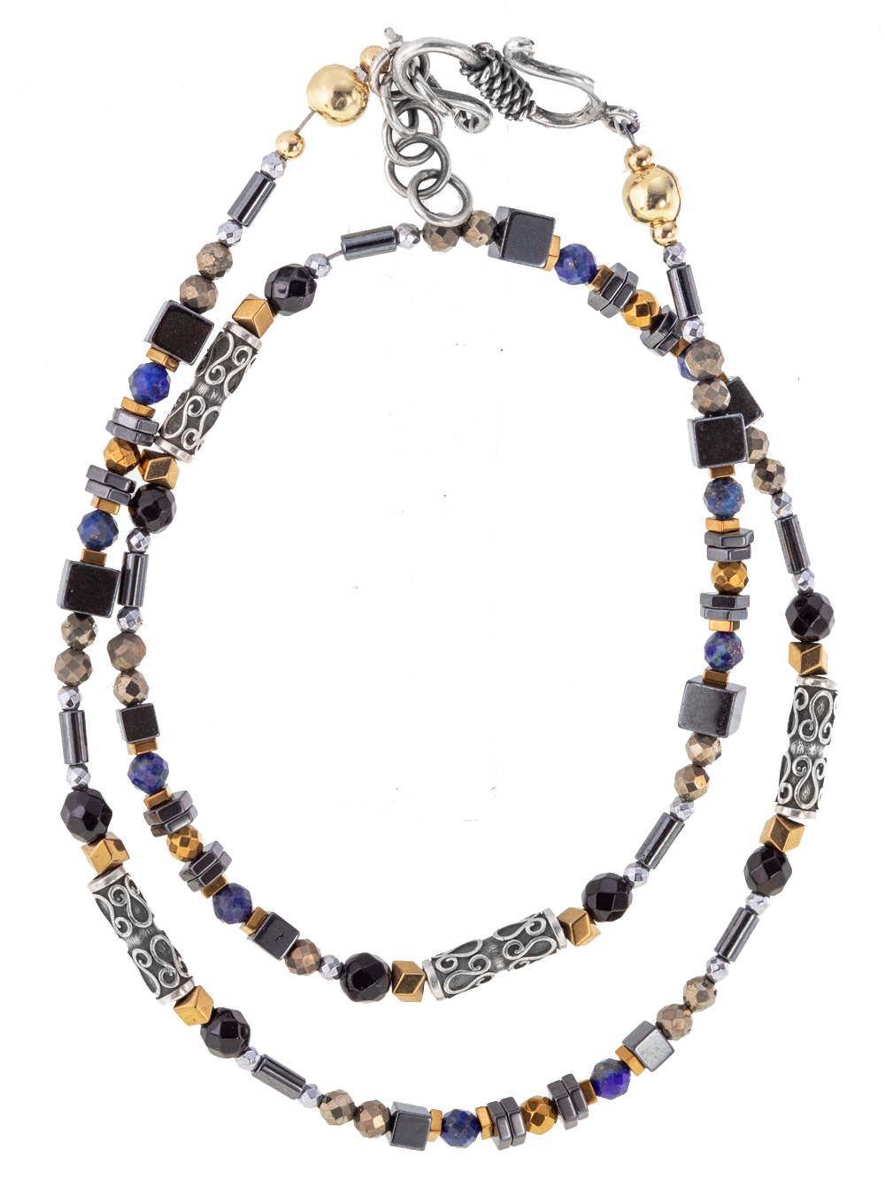 Колье (925) агат, лазурит, пирит