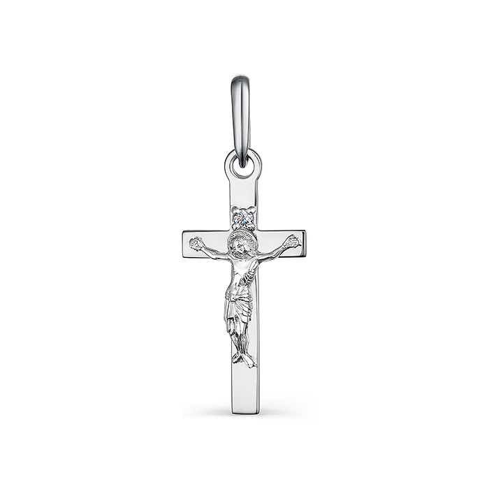 Подвеска Крест из белого золота 585 пробы с бриллиантами