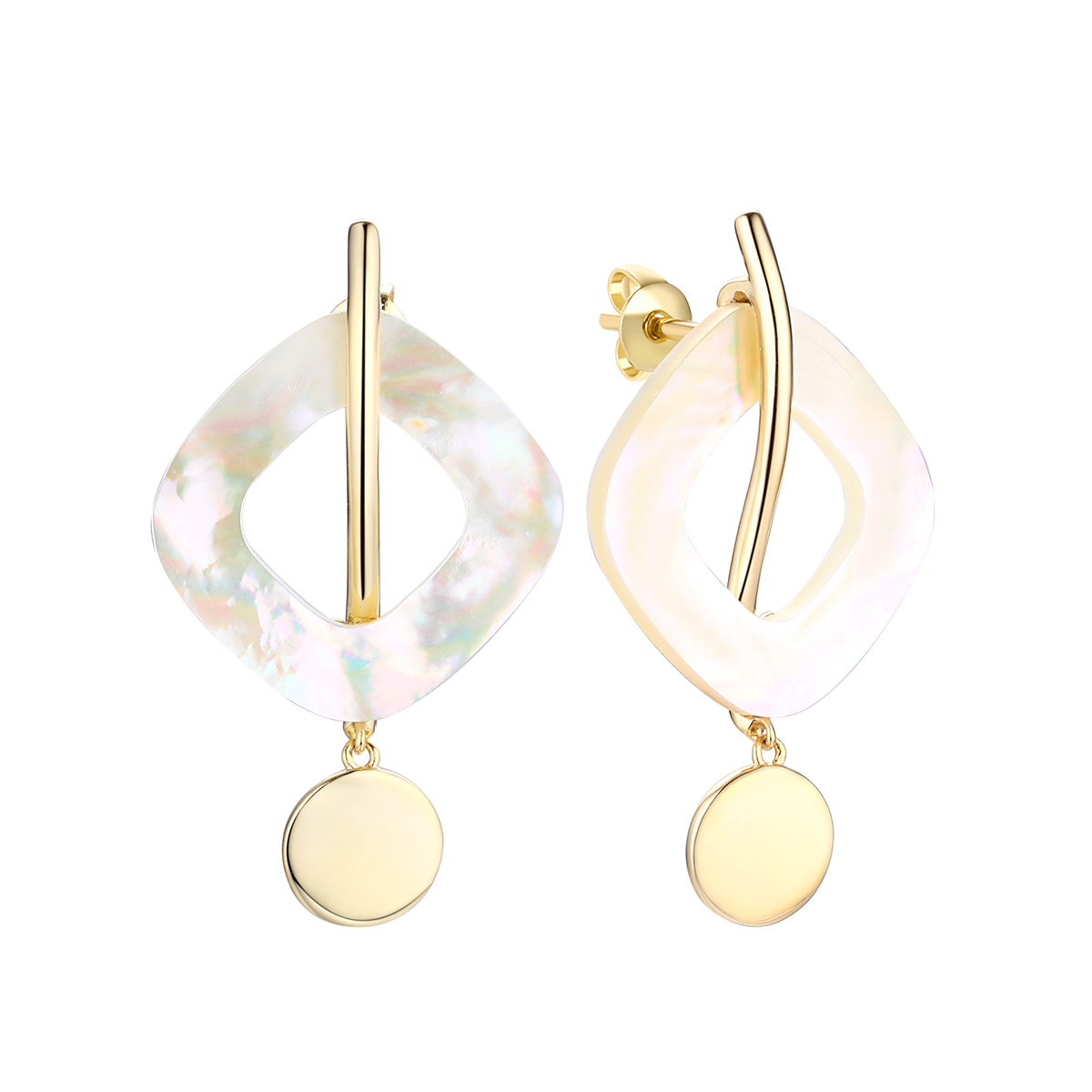 Серьги пусеты из серебра 925 пробы с позолотой, с перламутром