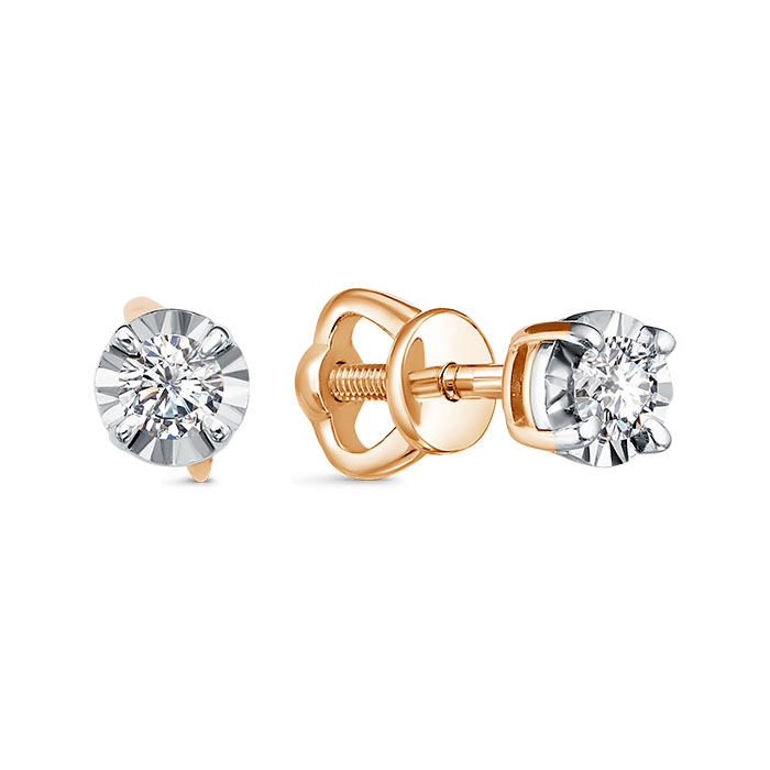 Серьги пусеты из золота 585 пробы с бриллиантами