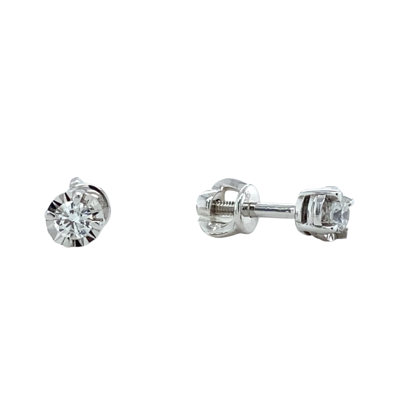 Серьги пусеты из белого золота 585 пробы с бриллиантами