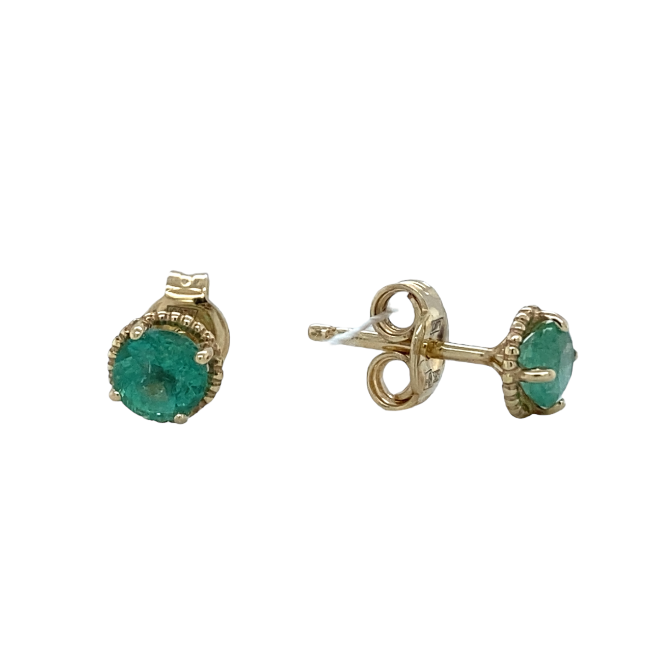 Серьги пусеты из желтого золота 585 пробы с изумрудами