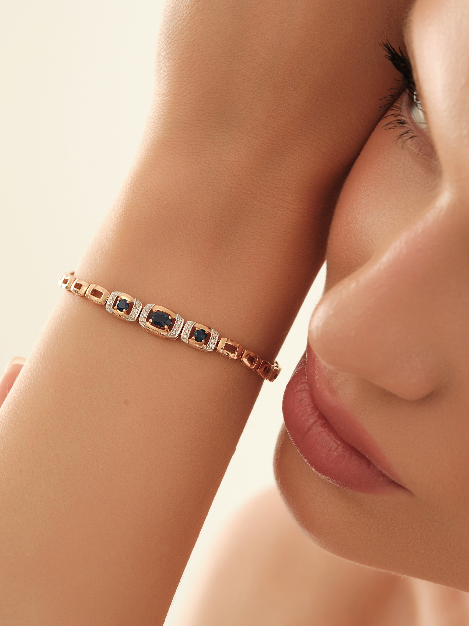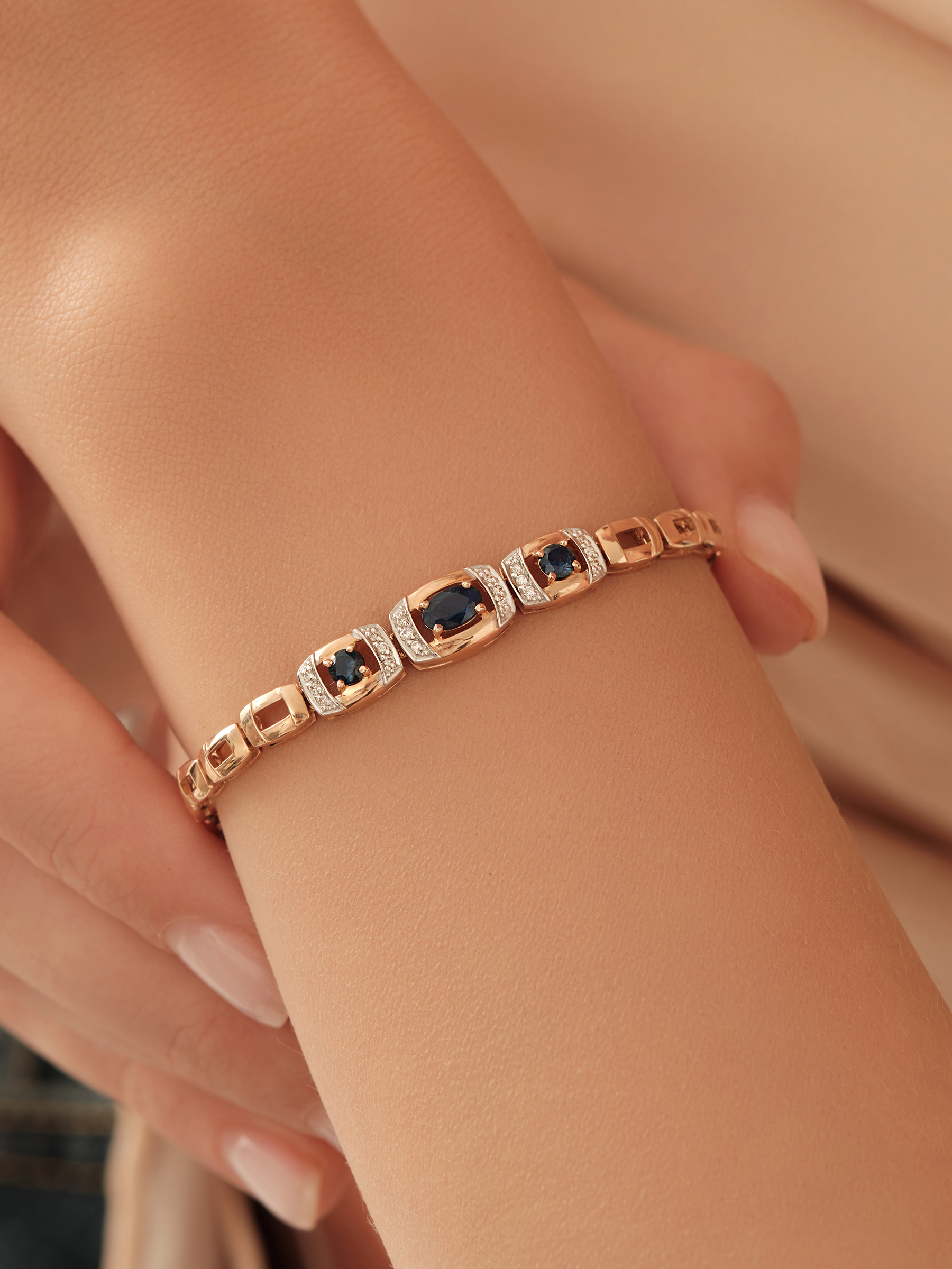 Браслет из золота 585 пробы с сапфиром и бриллиантами
