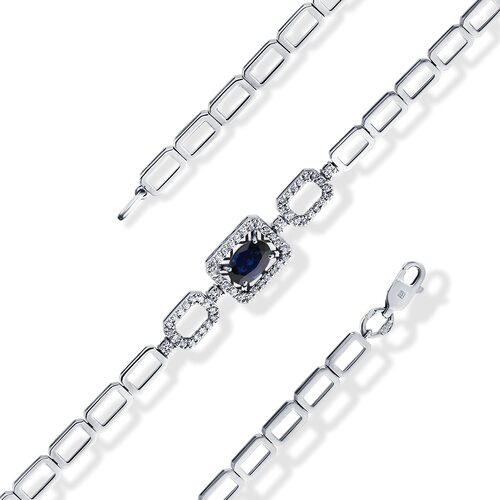 Браслет из белого золота 585 пробы с сапфиром и бриллиантом