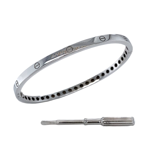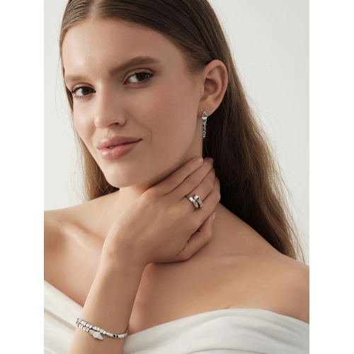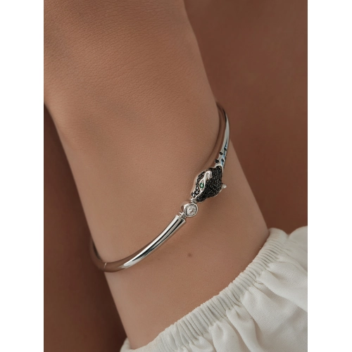 Жесткий браслет из белого золота 585 пробы с бриллиантами