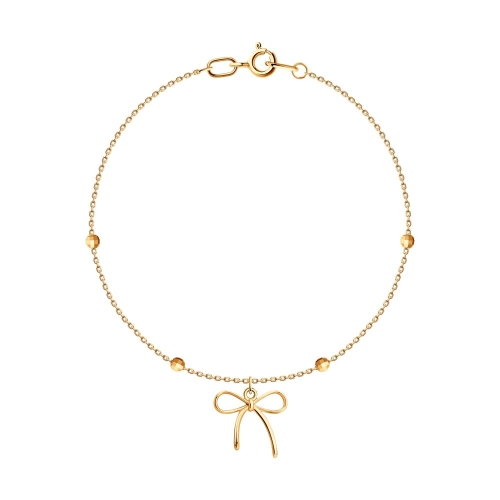 Браслет на ногу из желтого золота 585 пробы с фианитами