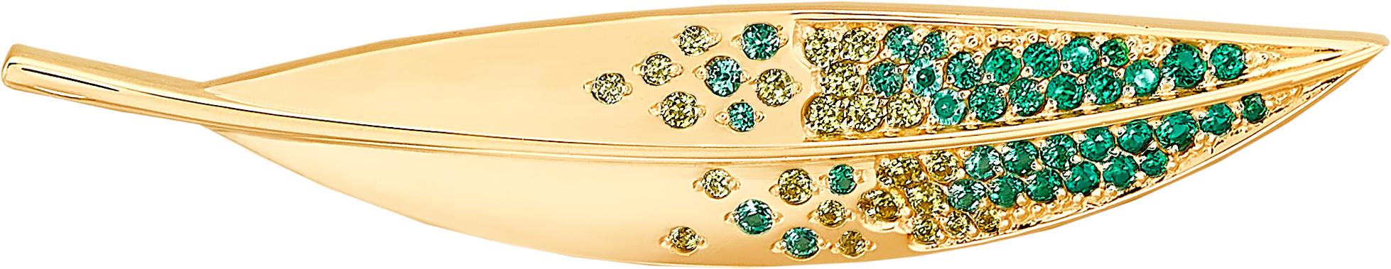 Растительные "отголоски" доносятся от изящной золотой броши с красочными цветными фианитами, перелив бликов которых наделяет украшение жизнью и природной силы очарованием! Летнего настроения украшение!