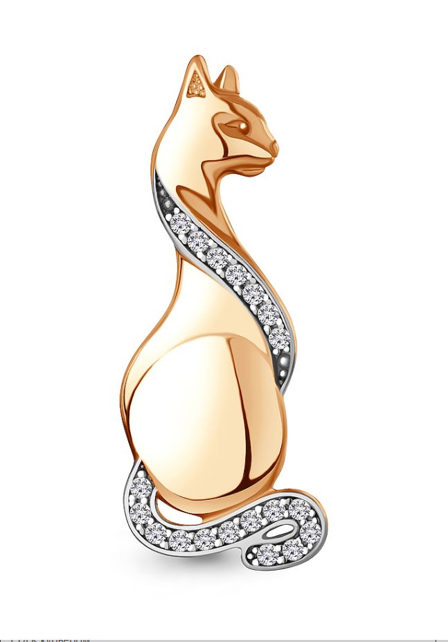 Брошь из серебра 925 пробы с позолотой, с фианитами