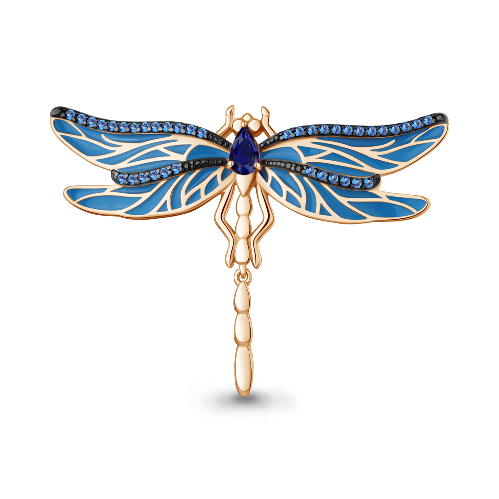Брошь (925 п) корунд сапфир синт., эмаль, фианит