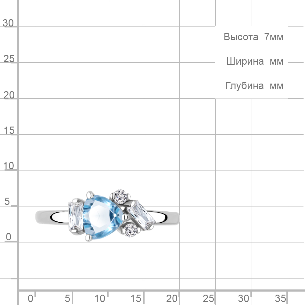 Кольцо из серебра 925 пробы с топазом и фианитами
